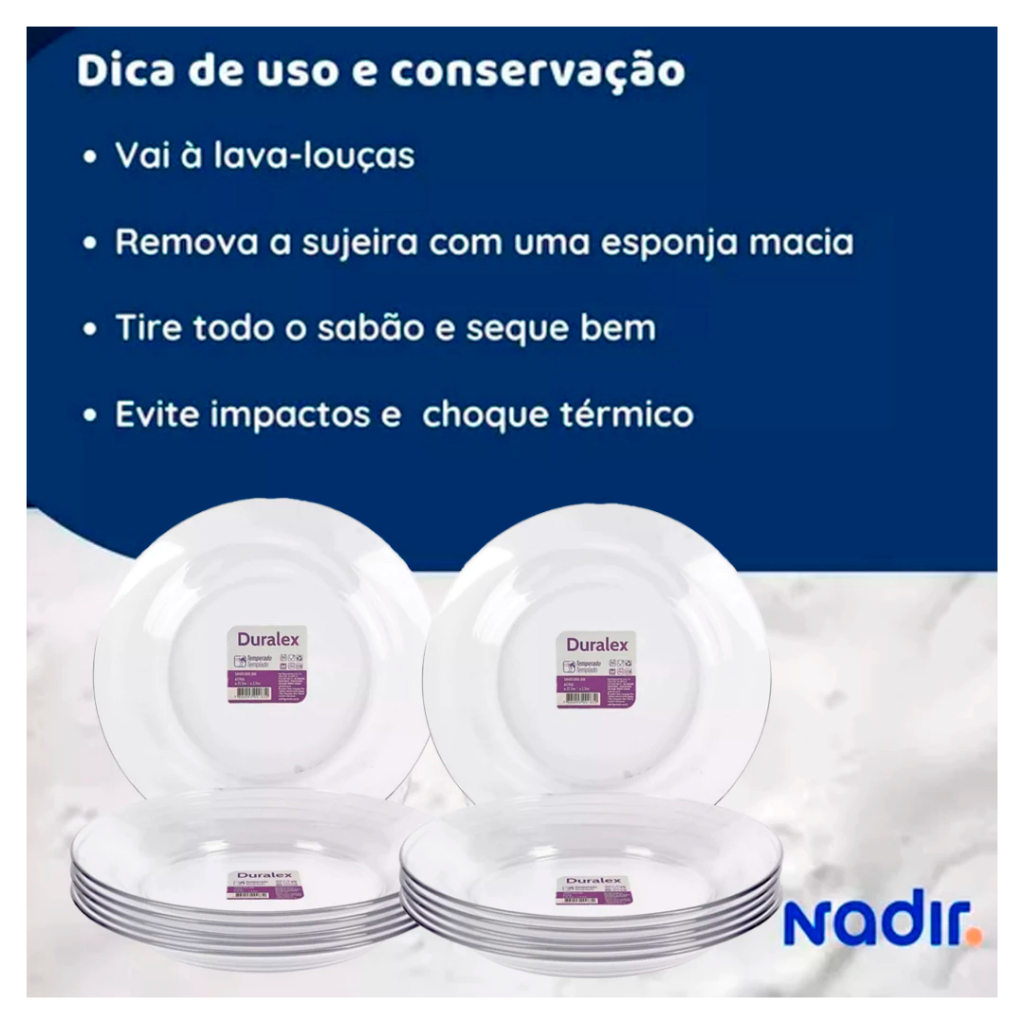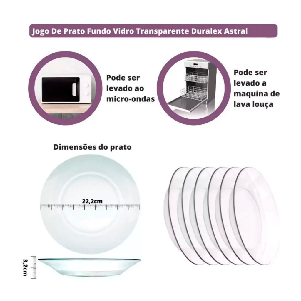 JOGO DE PRATOS DURALEX NADIR 22CM / VIDRO TRANSPARENTE MICROONDAS FREEZER GELADEIRA