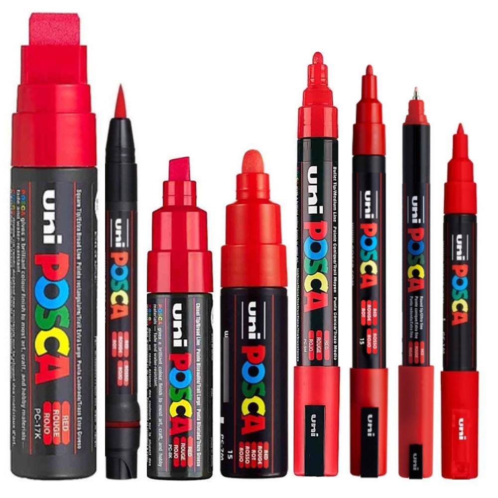 KIT Posca Completo Vermelho com todas as pontas Uni-ball