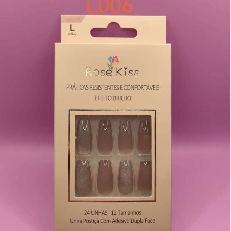KIT Unha Postiça Bailarina Longa Cor Natural 24PCS