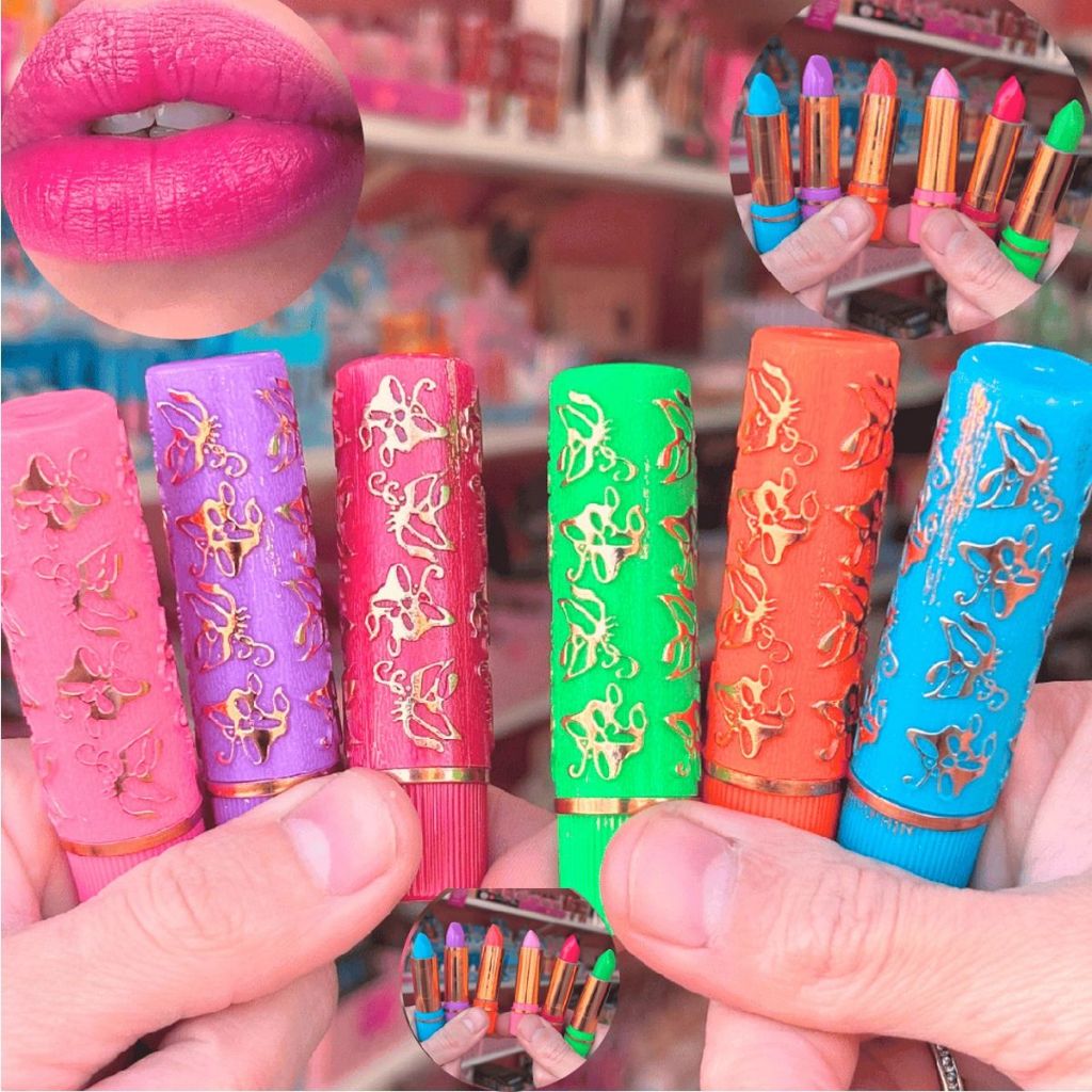 Kit Batom Mágico Muda de Cor Rosa Natural Hidratante Beleza Maquiagem 1 3 6 e 12 Unidades