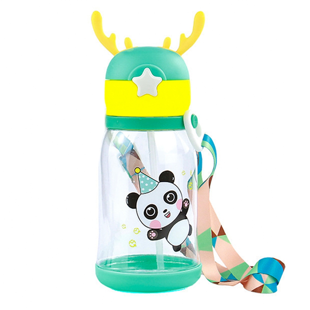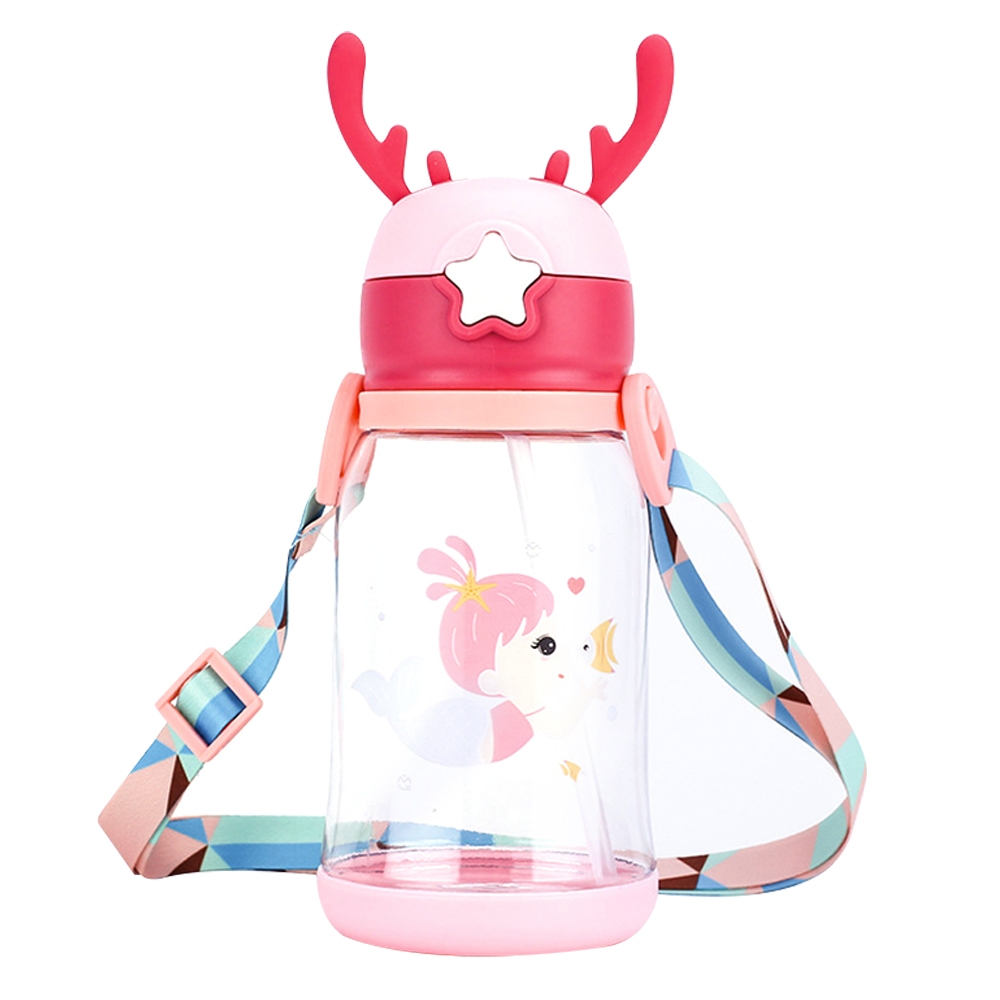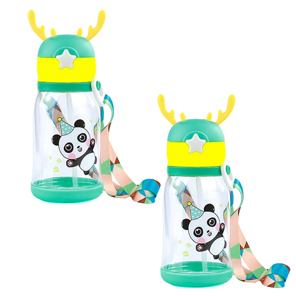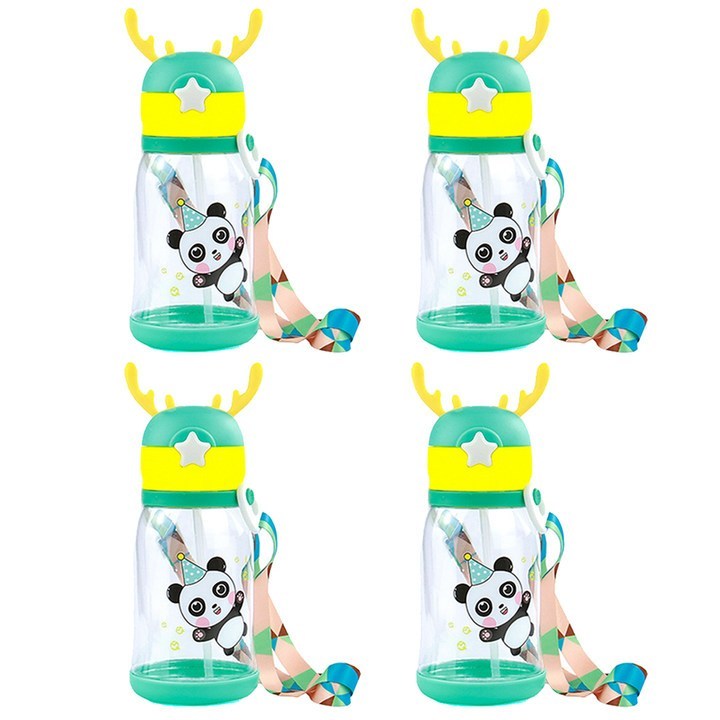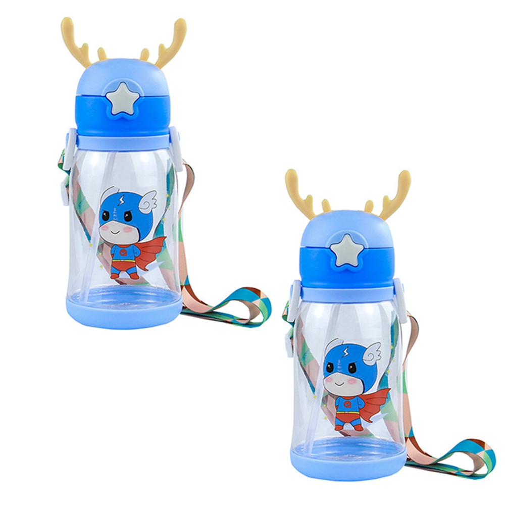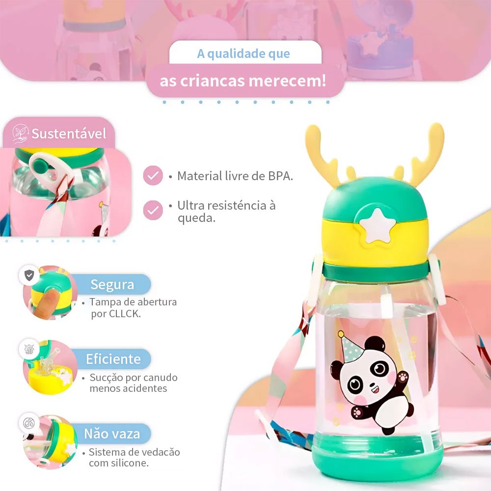 KIT2~KIT4 Garrafas De Alce Água Portáti Infantil 600ml Com Canudo e Cordão Copos Desenho