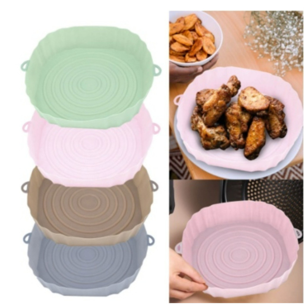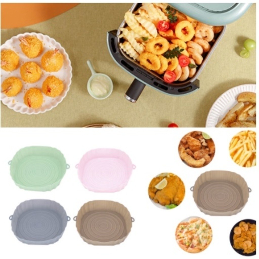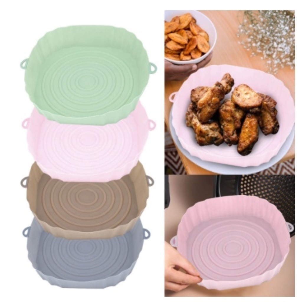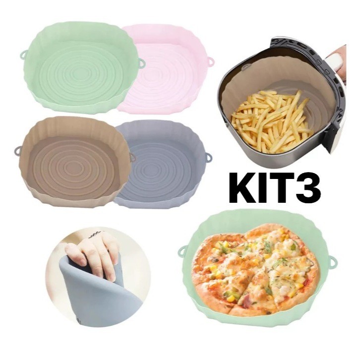 KIT3 AirFryer Pegador De Ar Pote De Silicone Bandeja De Cozimento Do Forno Fritos Pizza Frango Cesta Mat Praça Rodada Substituão Grelha Pan