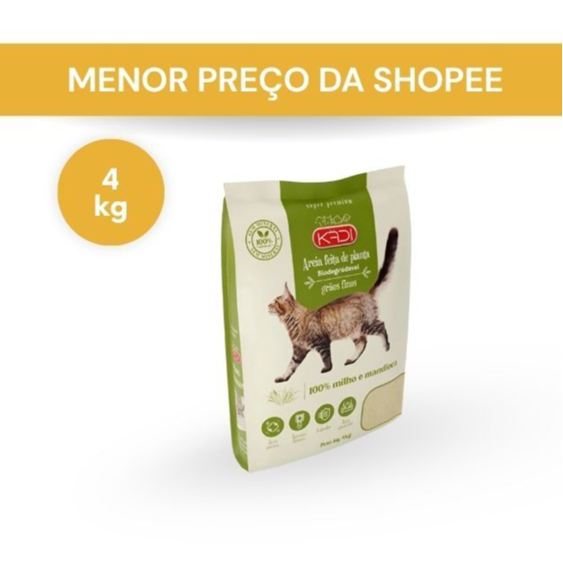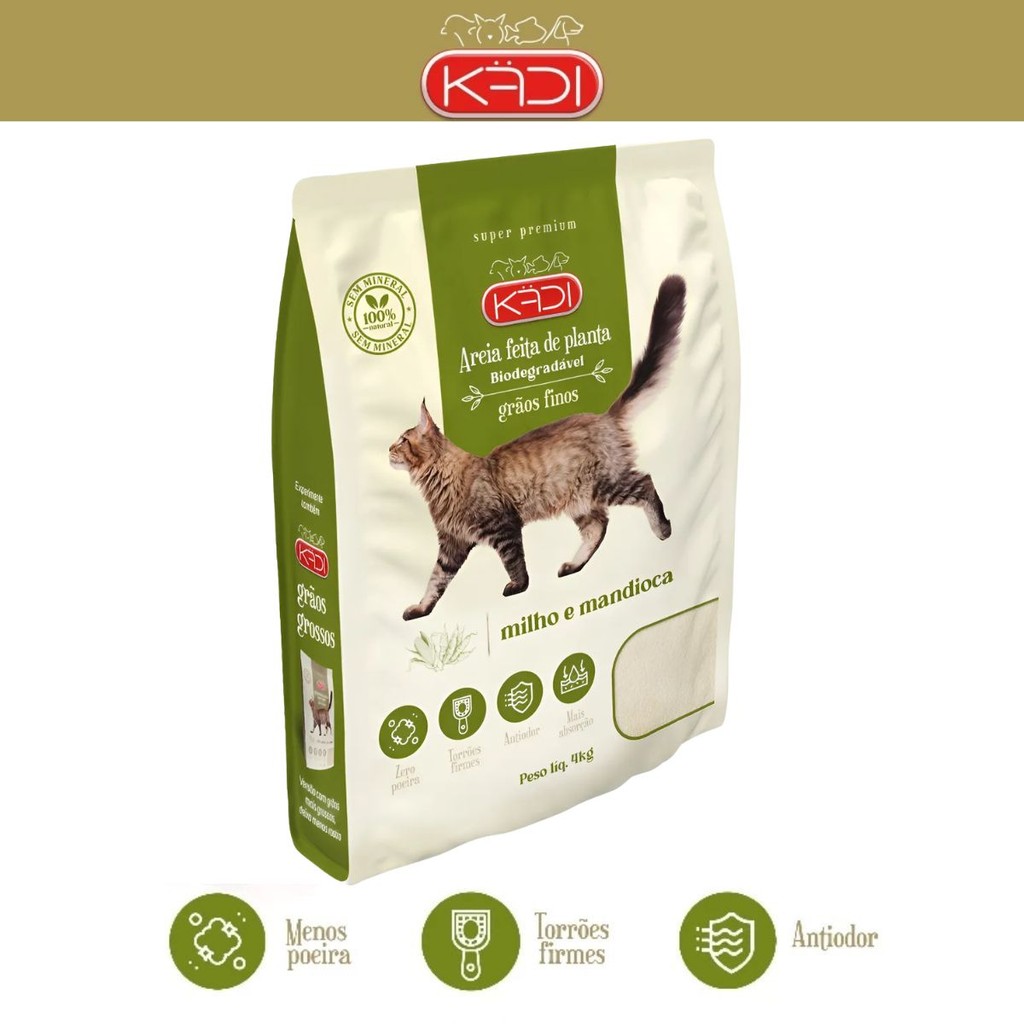 Kadi Areia Biodegradável Grãos Fino Gato 4kg Milho Mandioca 4 kg Cat Gatos Grao Finos Bio Verde