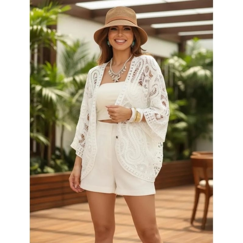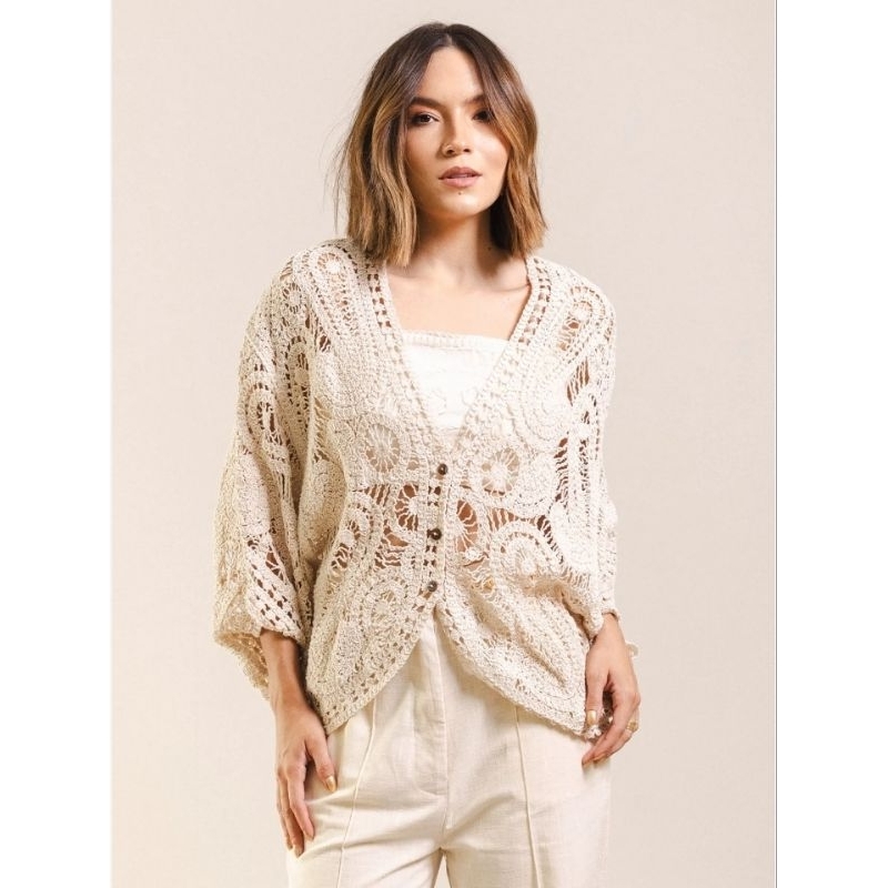 Kimono em Crochê feminino com manga ampla ,caimento perfeito ,elegância em qualquer ocasião