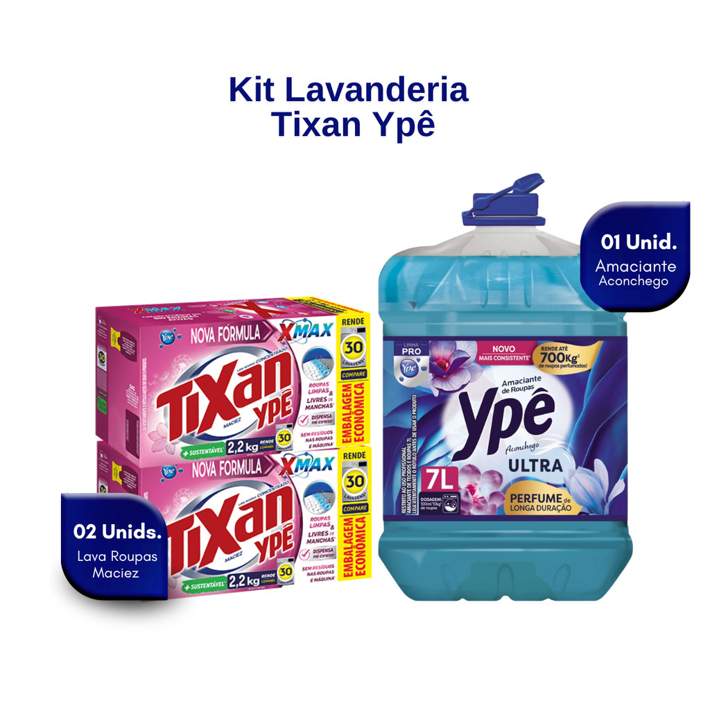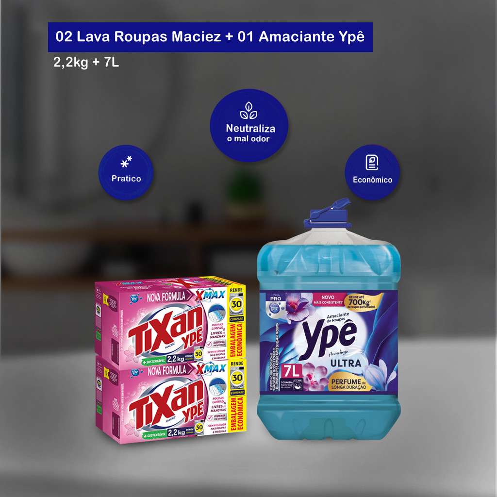 Kit 02 Lava Roupas 2,2kg Maciez + 01 Amaciante Aconchego 7L Ypê