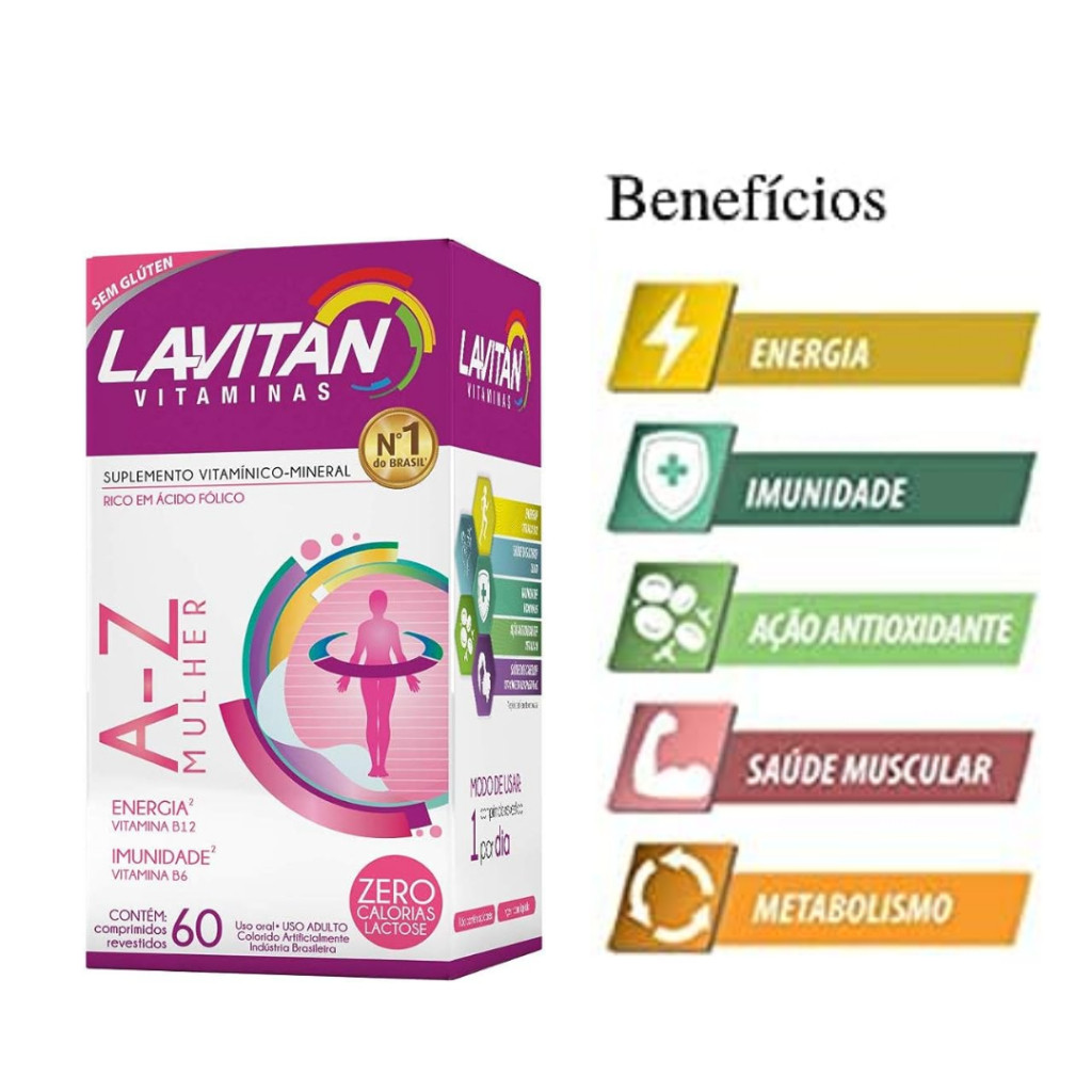 Kit 02 Lavitan AZ Mulher Cimed 60 Comprimidos Cada caixa Total 120 Comprimidos
