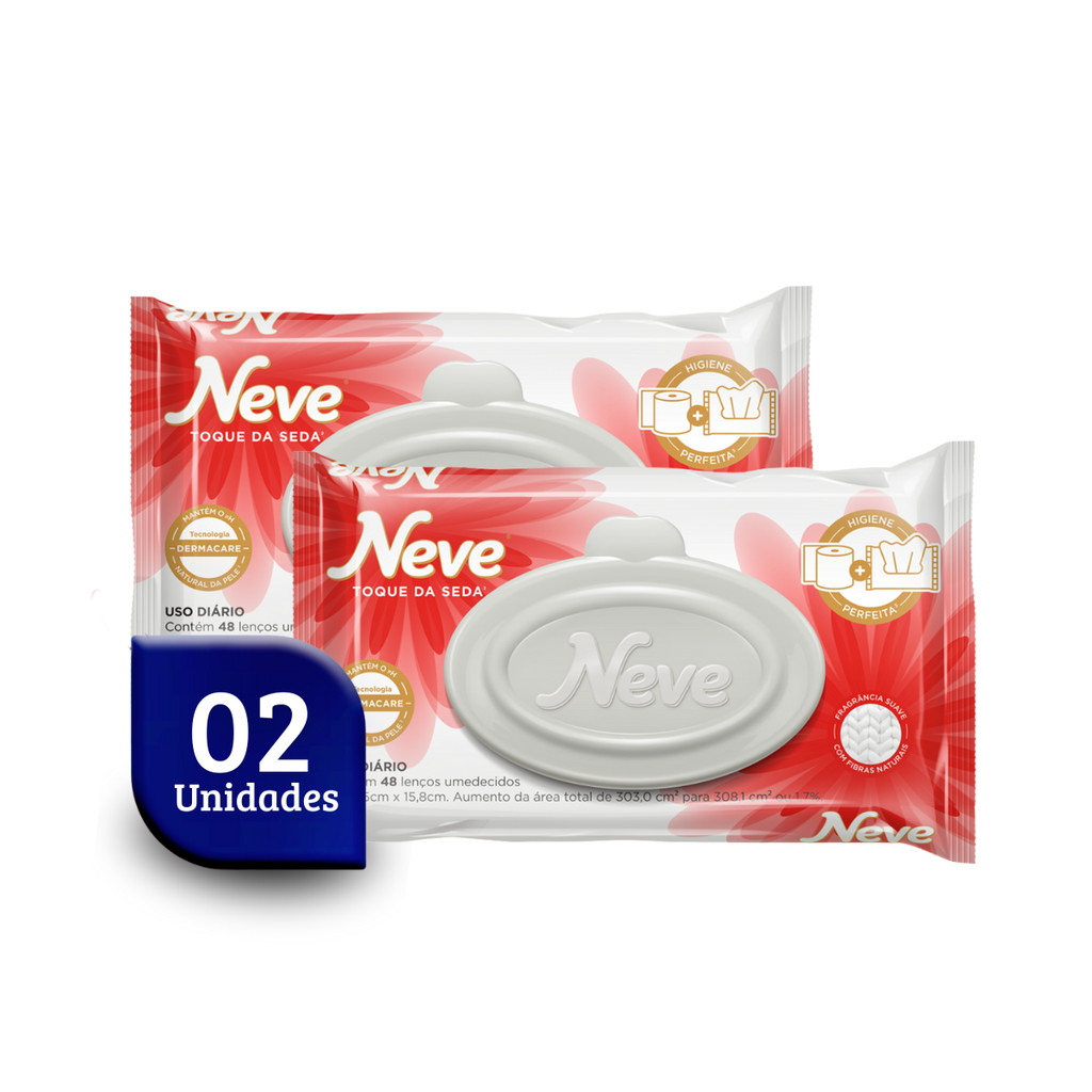 Kit 02 Pacotes de Lenços Umedecidos Toque da Seda Dermacare com 48 lenços cada Neve