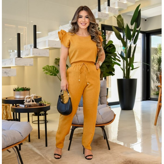 Kit 02 Peças Conjunto Scrub Feminino Casual Elegante Blusa Calça em Linho De Algodão com Babado Na Manga Cores Verão 2023 Roupa Feminina Social Festa Uniforme Fardamento Promoção Imperdível