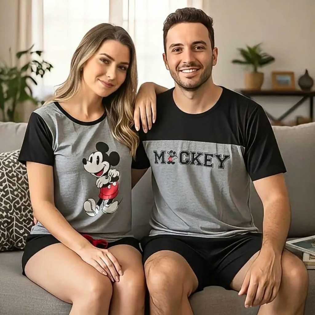 Kit 02 Pijama Casal Adulto Em Malha PV Light Verão Masculino e Feminino