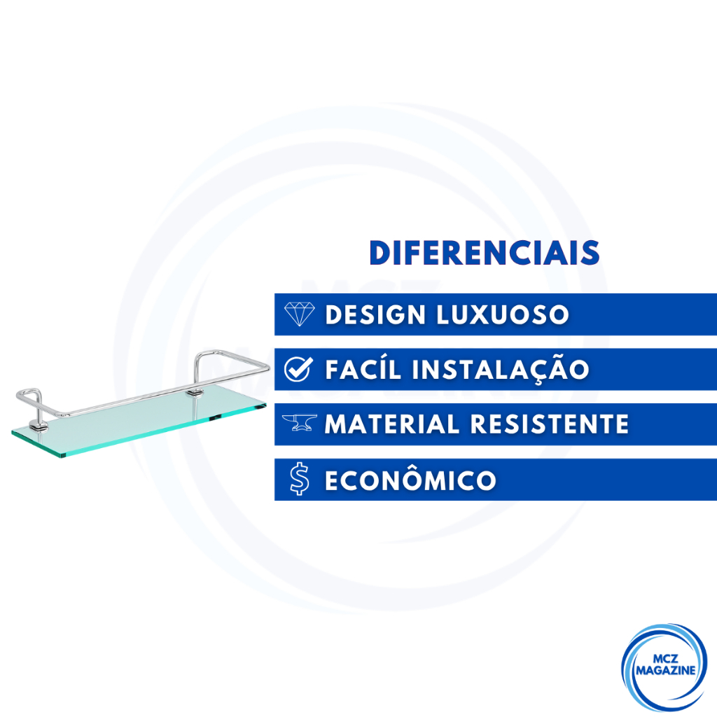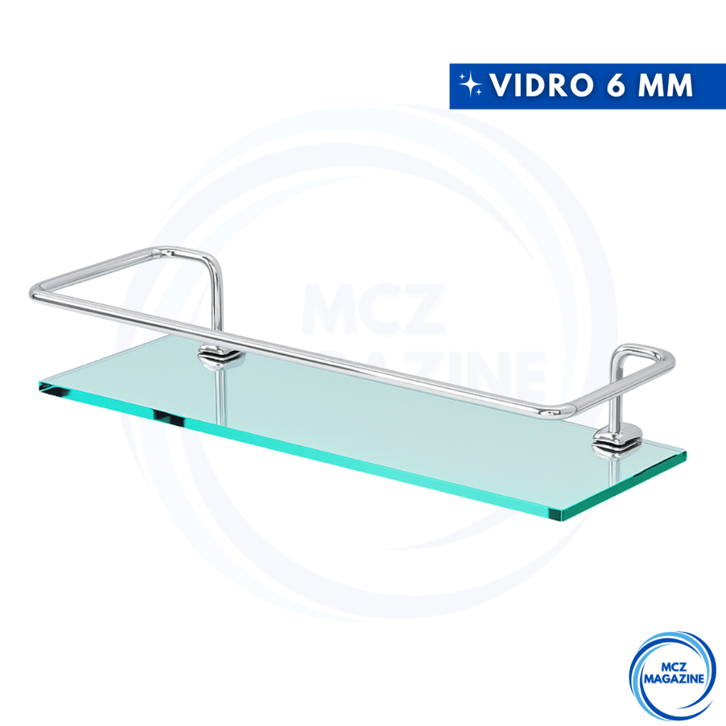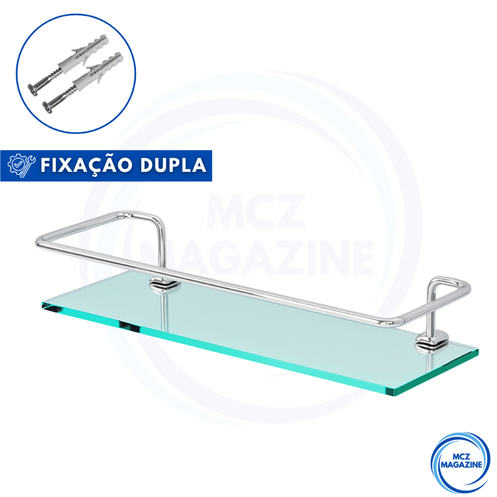 Kit 2 Prateleira Porta Shampoo Banheiro Vidro Reto Antiferrugem Suporte Parede Organizador Vidro6mm