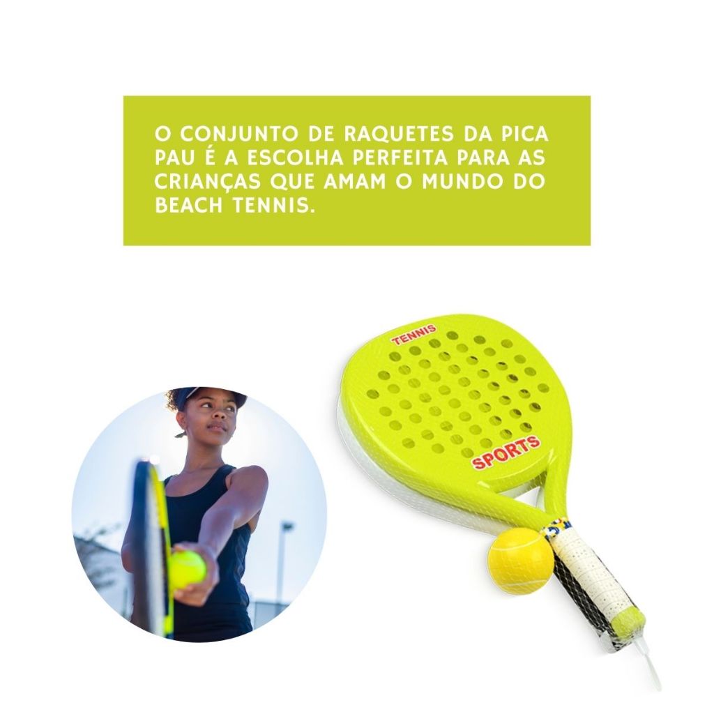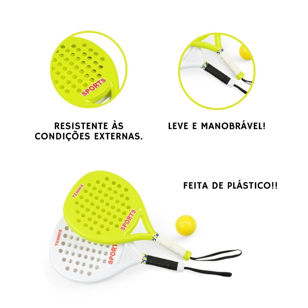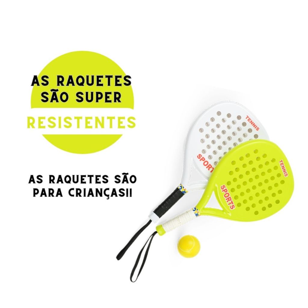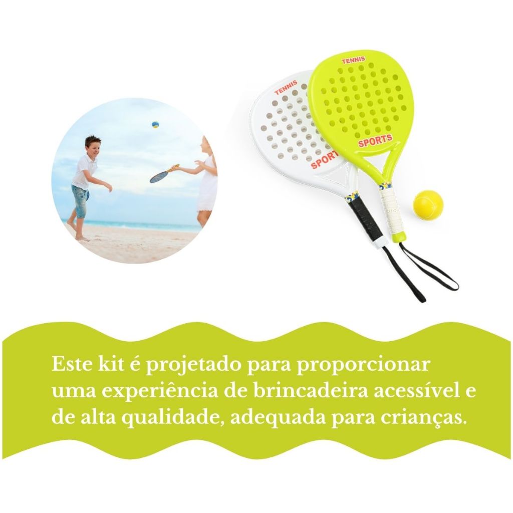 Kit 02 Raquetes De Tênis C/ Bolinha Beach Tennis Jogo De Praia Infantil Super Resistente