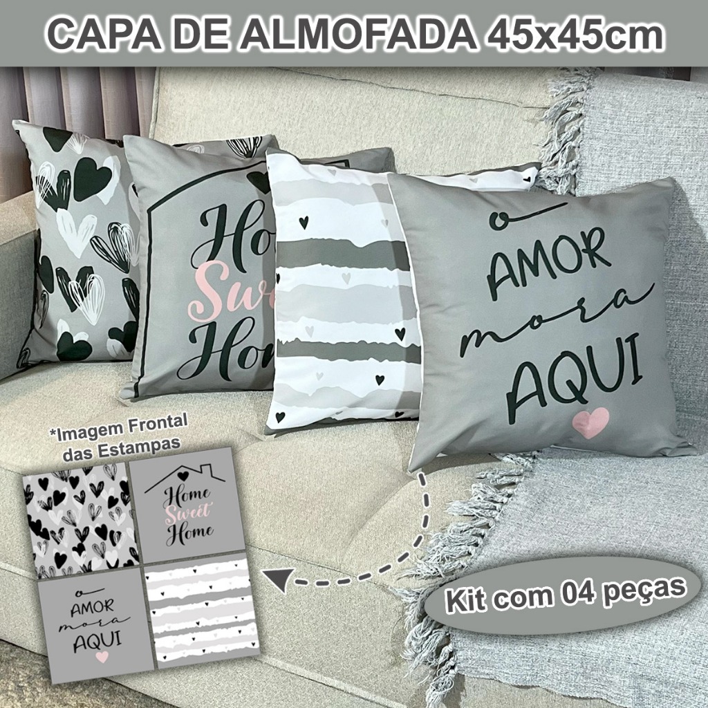 Kit 04 Capa de Almofadas 45x45cm Micro Percal 180 Fios Estampado Com Zíper Invisível Envio Imediato