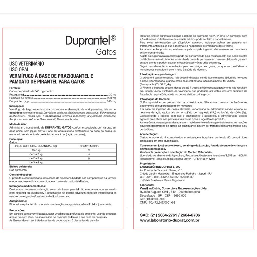 Kit 04 Duprantel Gatos C/4 Comprimidos Vermifugo