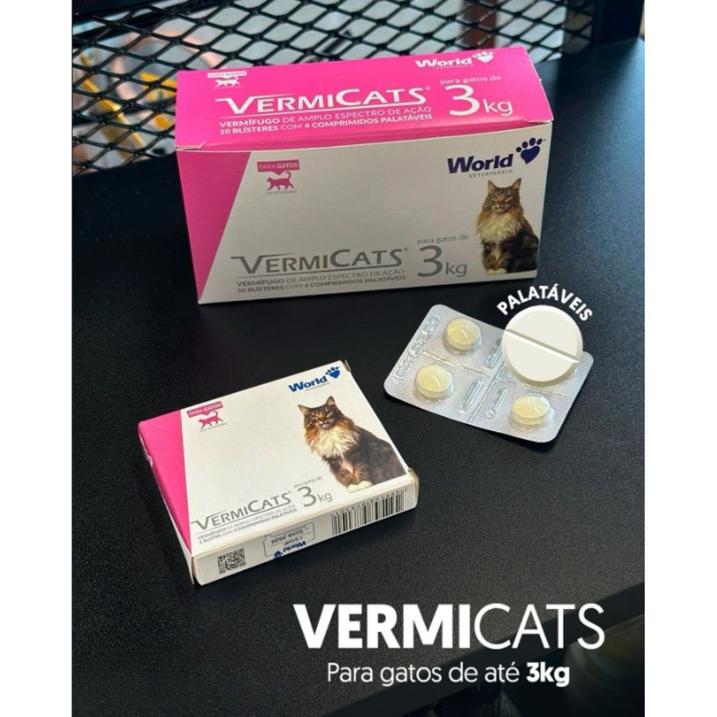 Kit 04 Vermicats 600MG 4 Comprimidos Vermífugo Para Gatos