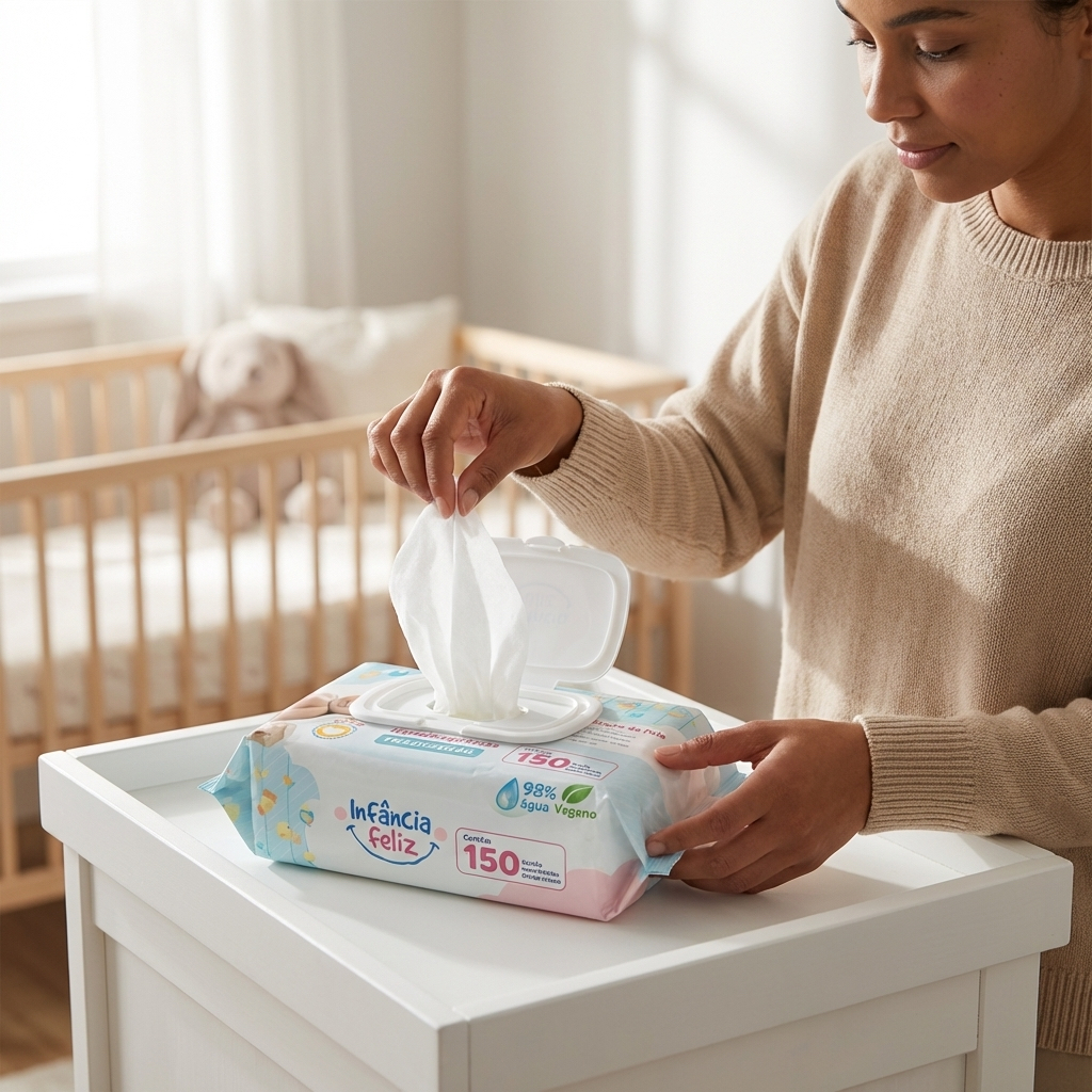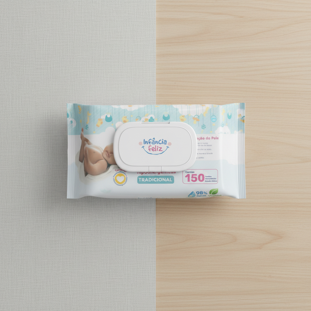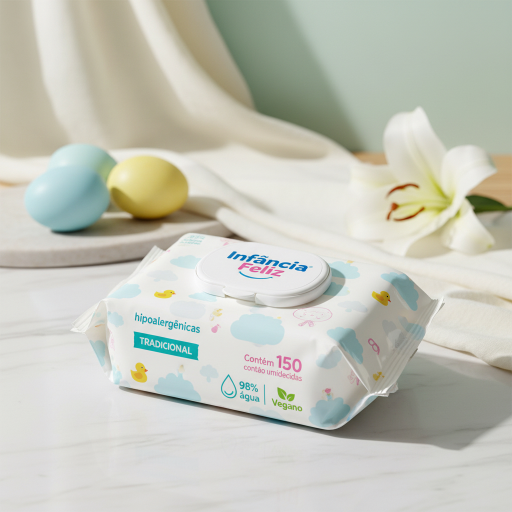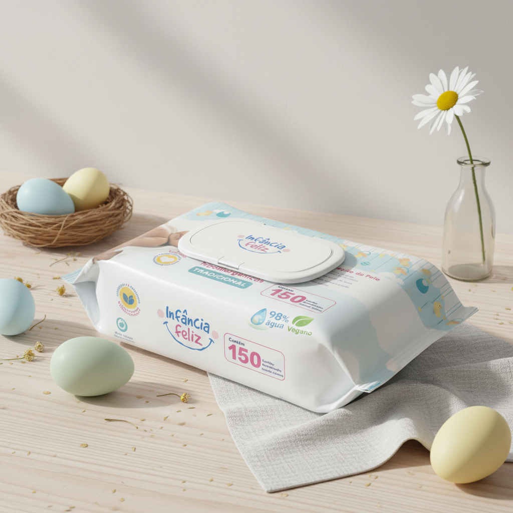 Kit 6 Toalhas Umedecidas Infância Feliz 150 Folhas 98% Água