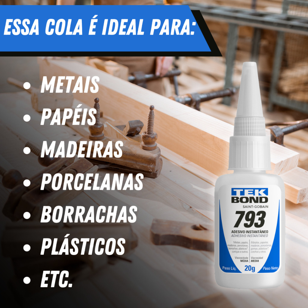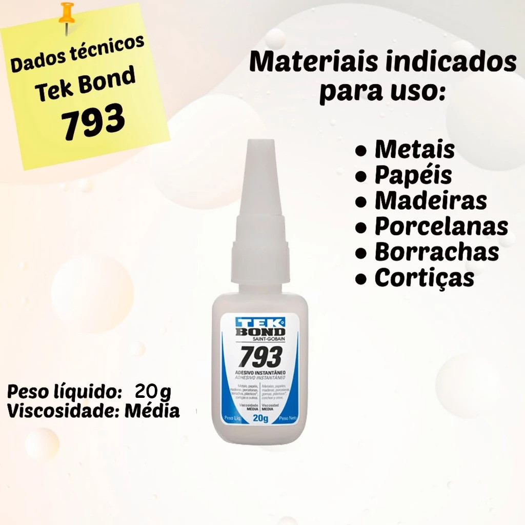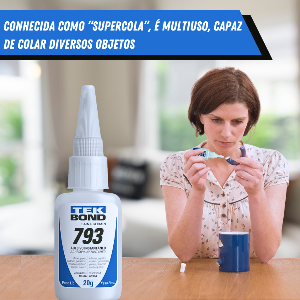 Kit 1/2/3 Unidades Colas Instantâneas TekBond 793 Super Bonder 20g - Adesivo Multiuso Para /Plástico/Metal e Borracha