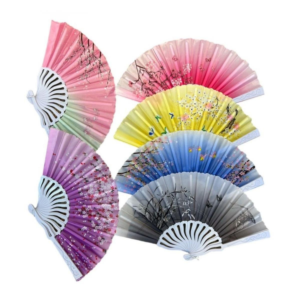 Kit 1/3/6 Leque de Mão Dobrável Chinês Borboleta/ Flor / Lantejoulas Ideal Para Carnaval e Calor - Envio Imediato - WL