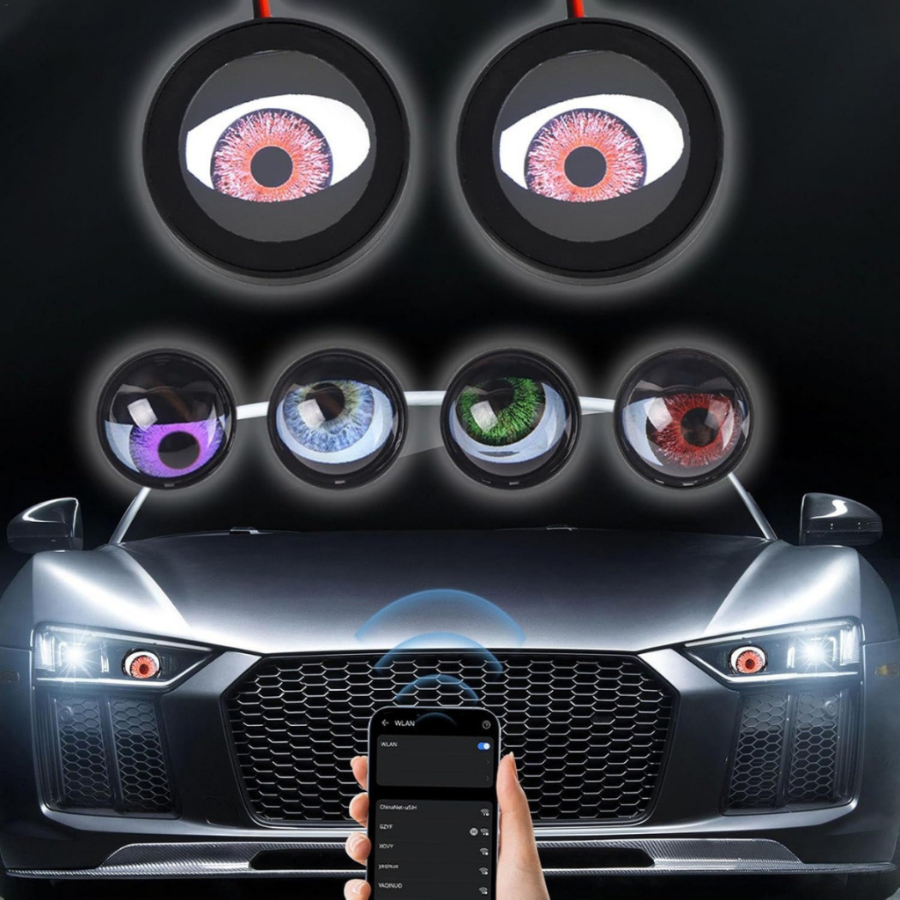 Kit 1- 4 Display Led 12V WIFI Olhos de Deus Eyes Devil Lens Luz Farol Carro Moto Decorativo UNIF