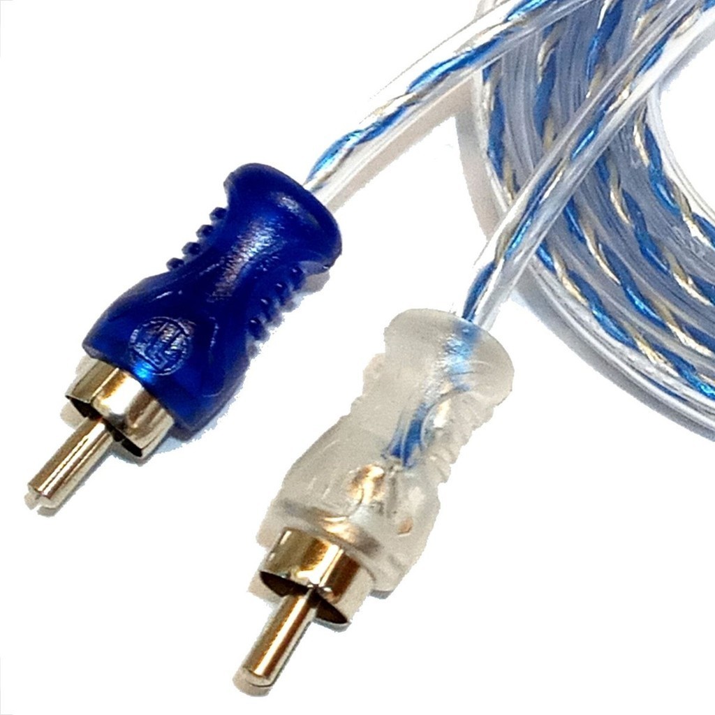 Kit 1 Cabo Rca 5m + 2y Dupla Blindagem Injetado Azul Cristal Automotivo Cristal Y 2M/1F