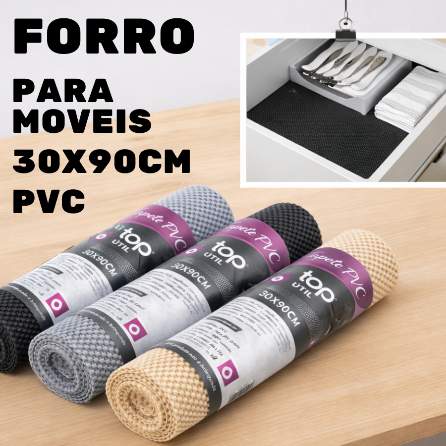 Kit 1 Ou 3 Peças Rolo Forro 30x90cm Resistente PVC Antiderrapante Para Armarios Gavetas Moveis