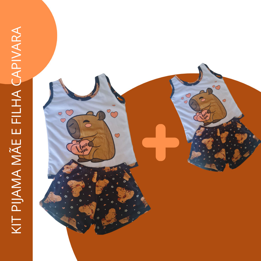 Kit 1 Pijama Mae + 1 Pijama Filha Regatinha da Capivara Short Dool Adulto Infantil Tal Mae Tal Filha Baby Dool