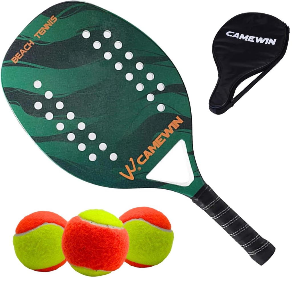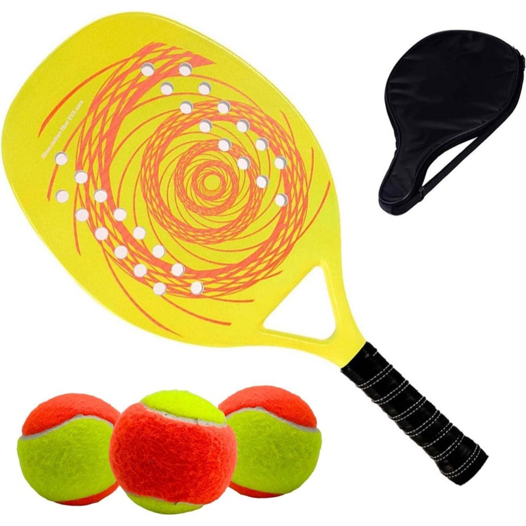 Kit 1 Raquete Beach Tennis Fibra de Carbono com Capa Protetora + 3 Bolinhas de Beach Tennis
