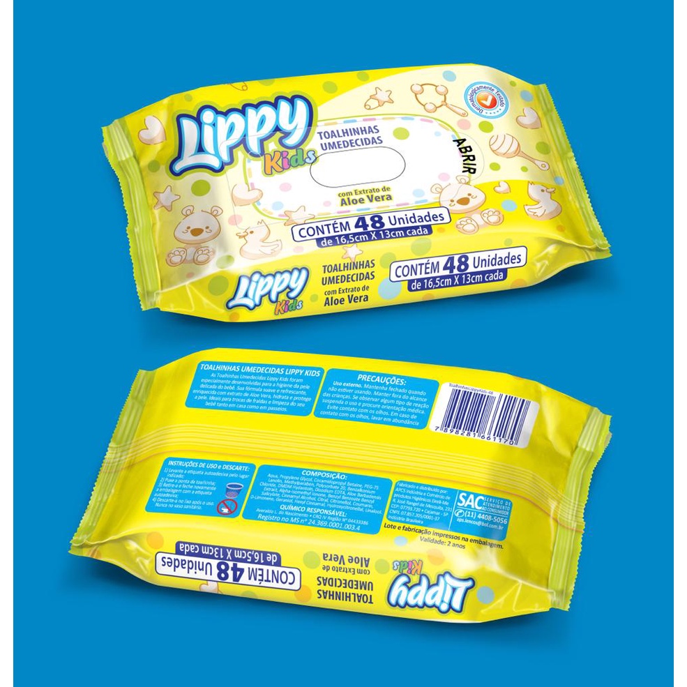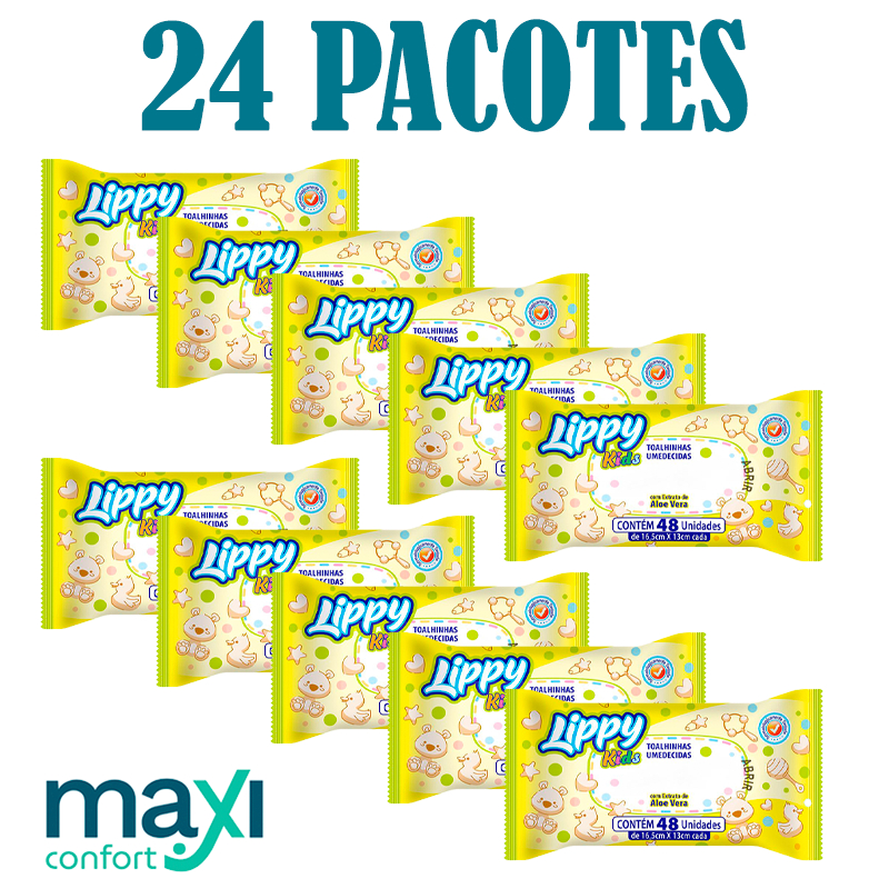 Kit 10-24 Pacotes Toalha Umedecida Lippy Kids Direto Da Fábrica