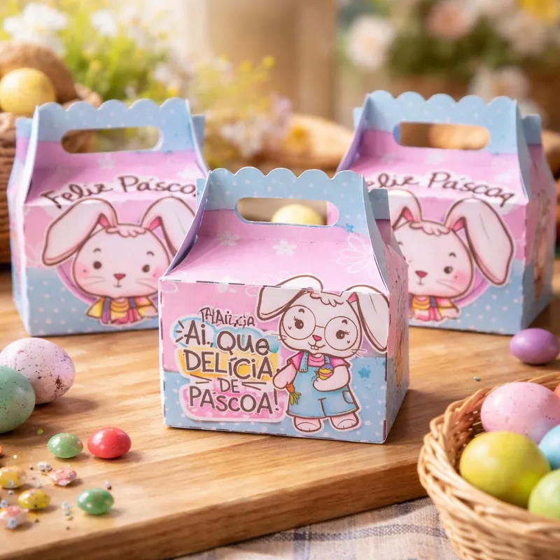 Kit 10 Caixinha Lembrancinhas Decorativas de Páscoa Infantil Personalizadas Mimo