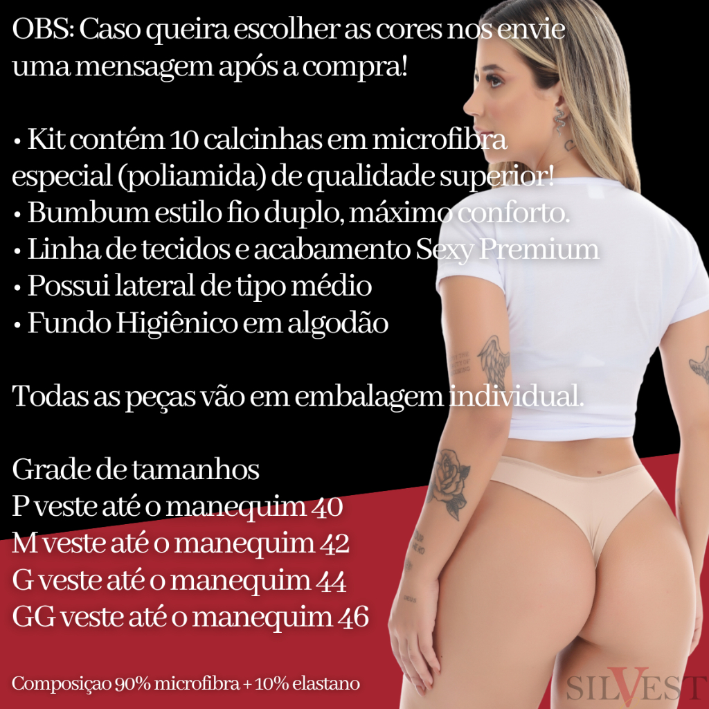 Kit 10 Calcinhas Qualidade Premium Fio Duplo | Tanga 8071