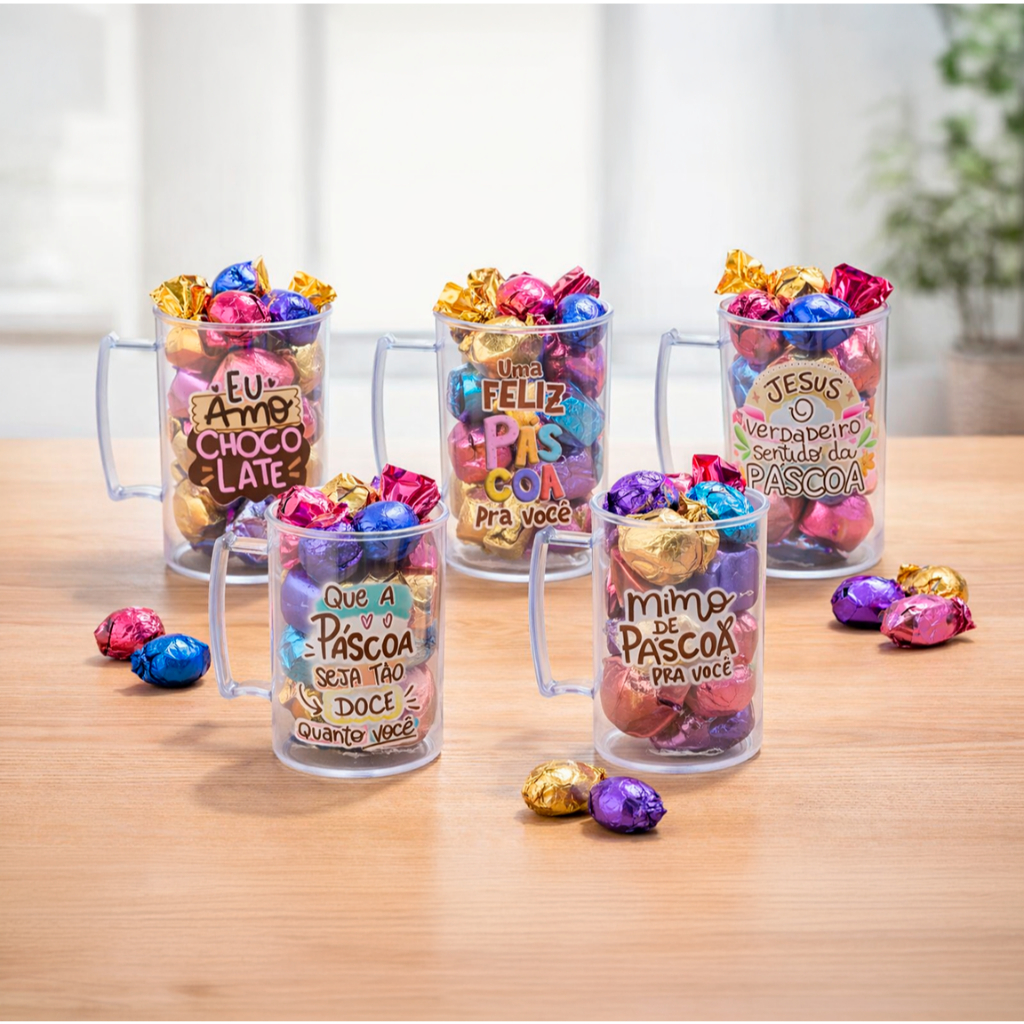 Kit 10 Canecas Feliz Páscoa Acrílico 300ml Lembrancinha Brinde Presente