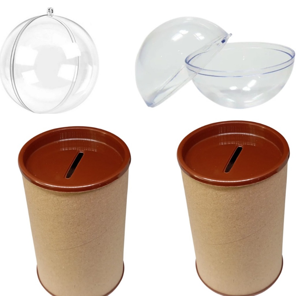 Kit 10 Cofrinhos 10x6 - 10 Esferas Bola Acrilica 6,5 cm -Festa Luxo Cofre Duplo bolinha Lembrancinha
