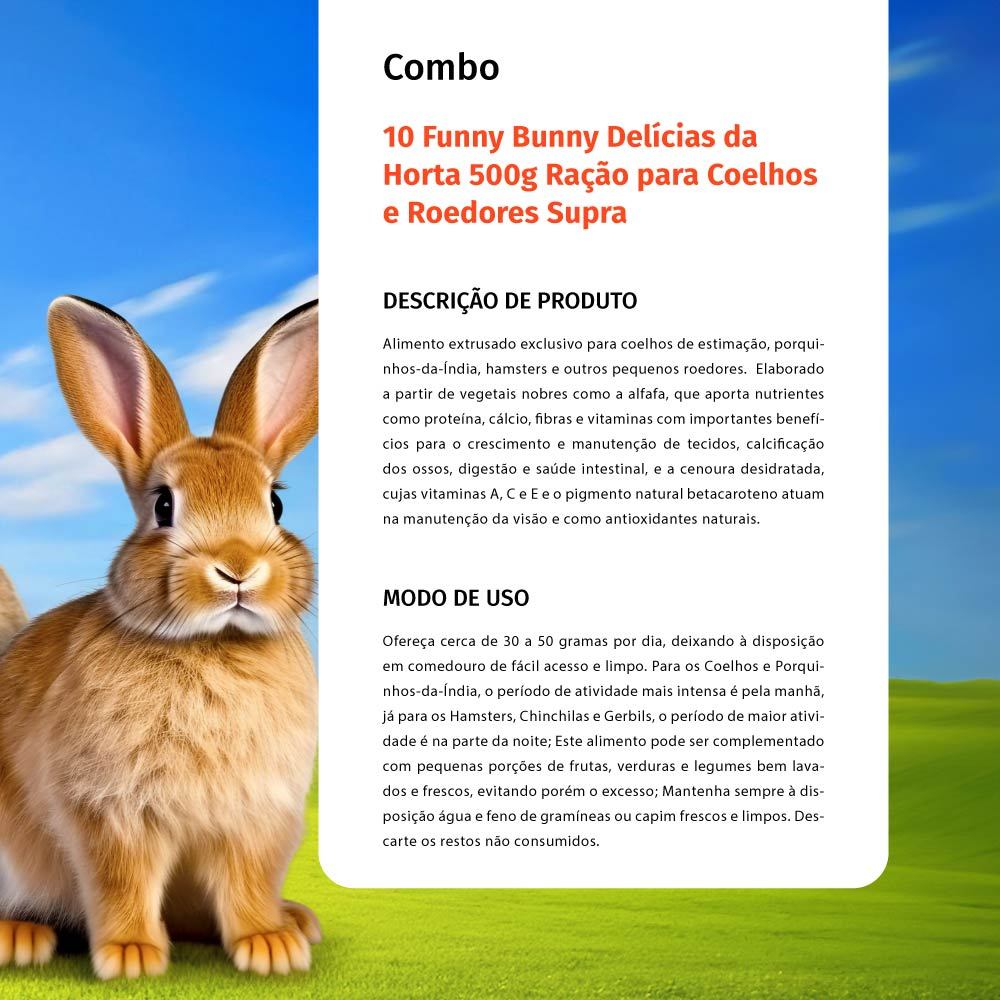 Kit 10 Funny Bunny Delícias da Horta 500g Ração para Coelhos e Roedores Supra