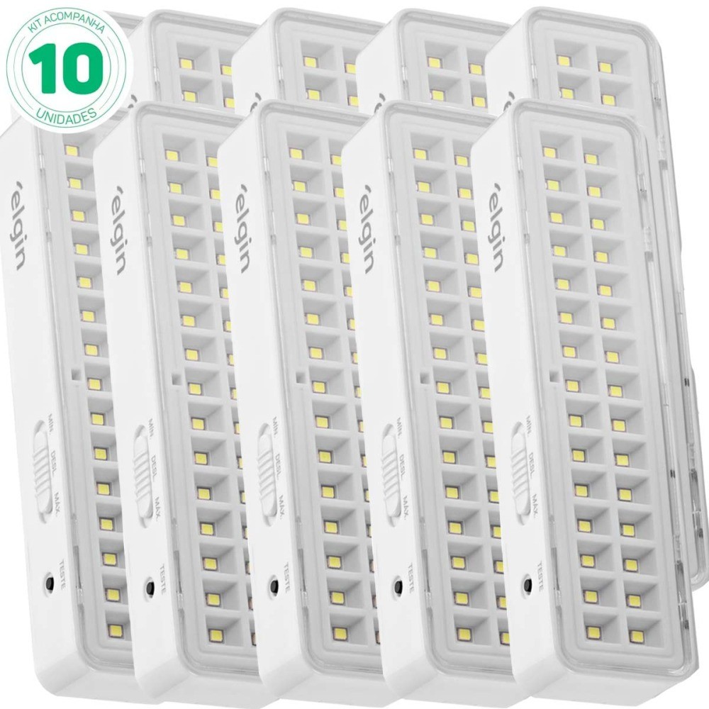 Kit 10 Luminárias de emergência 30 Leds branca - Elgin