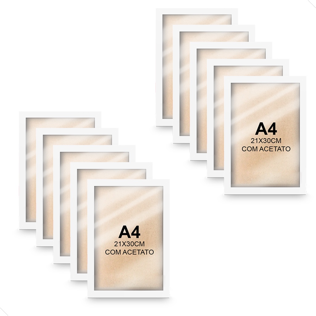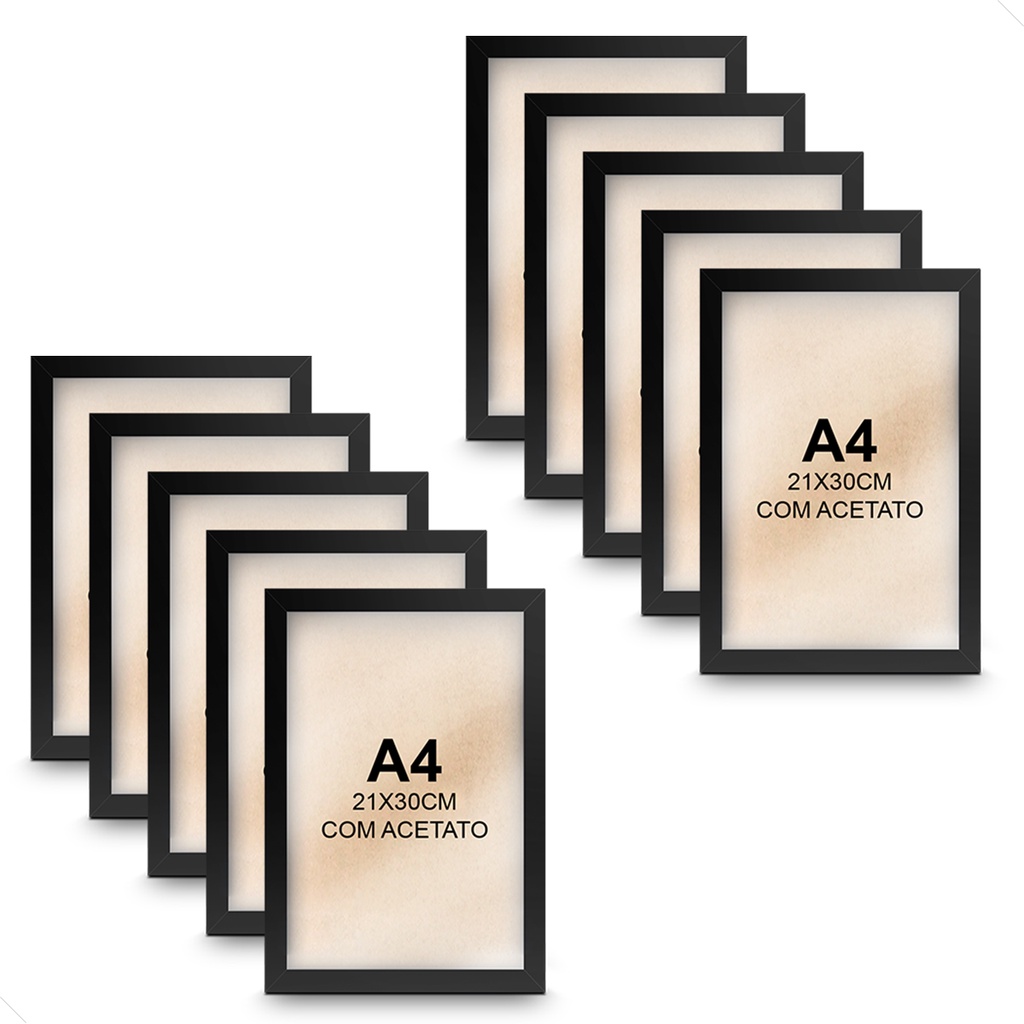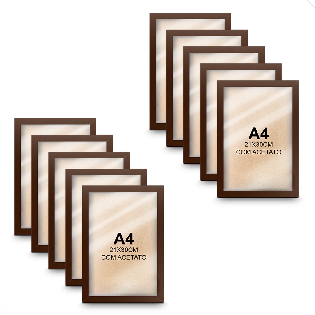 Kit 10 Molduras Certificado Diploma Foto C/ Proteção d Acetato A4 30x21cm