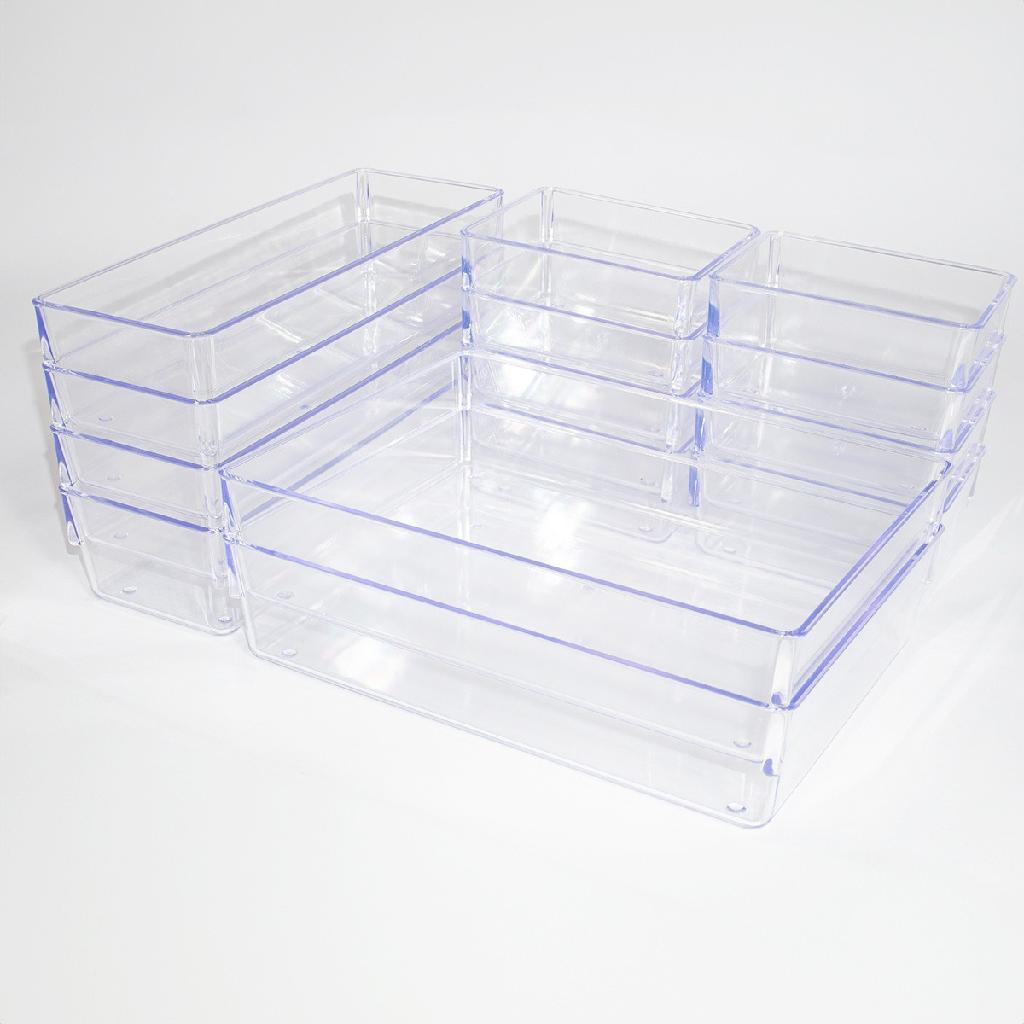 Kit 10 Organizadores Acrílico Cristal Modular Para Geladeiras Maquiagens Gavetas Armarios