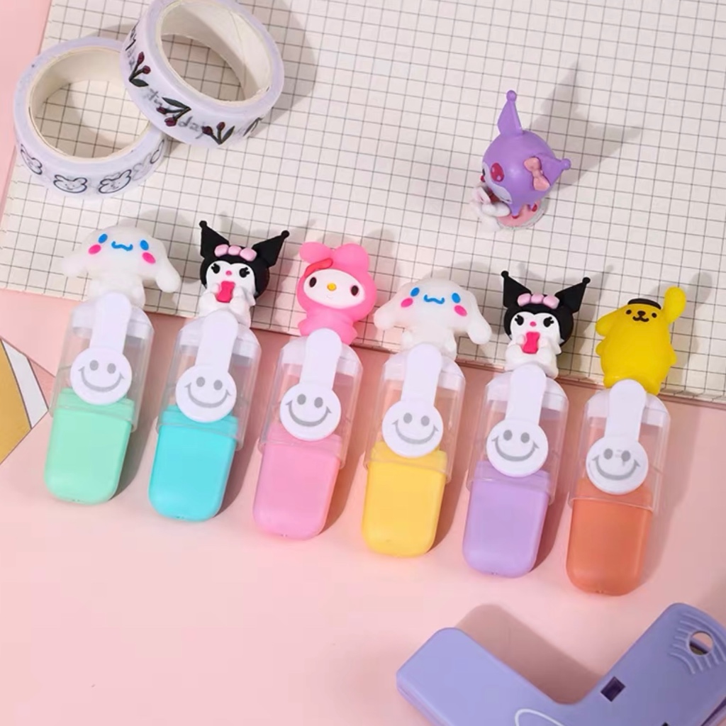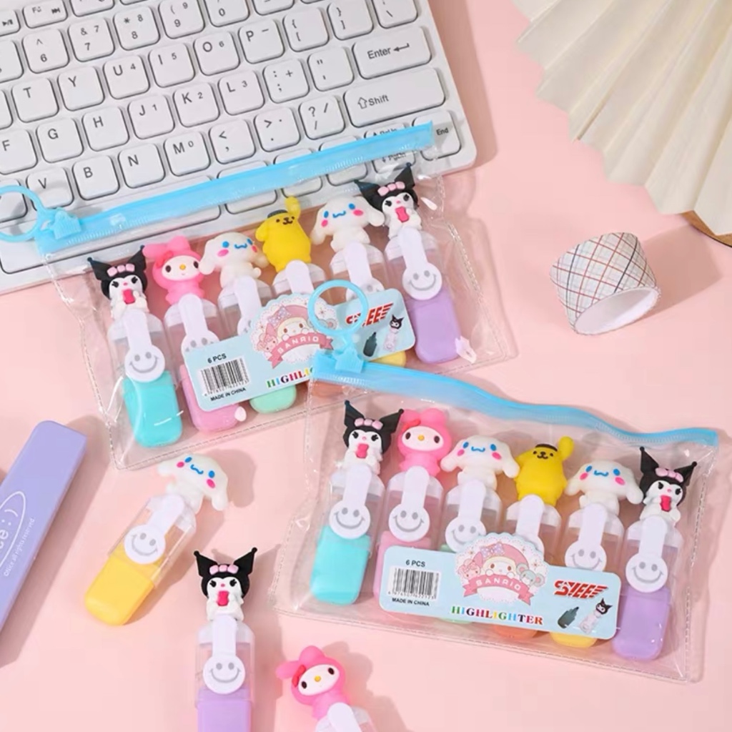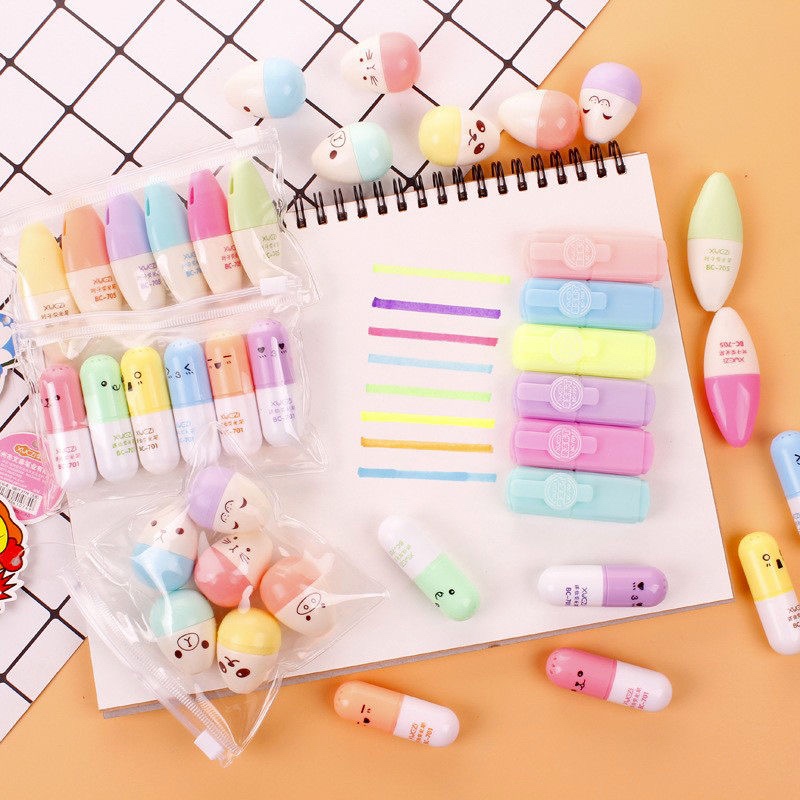 Kit 10 Pacotes/Com 6 Peças Mini Marcador De Texto / Kawaii Desenho Fofo Marca Texto