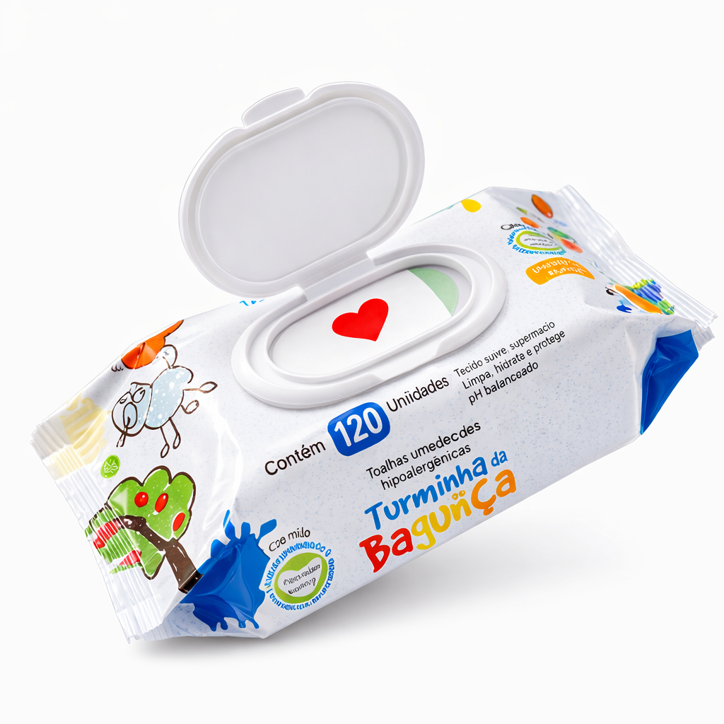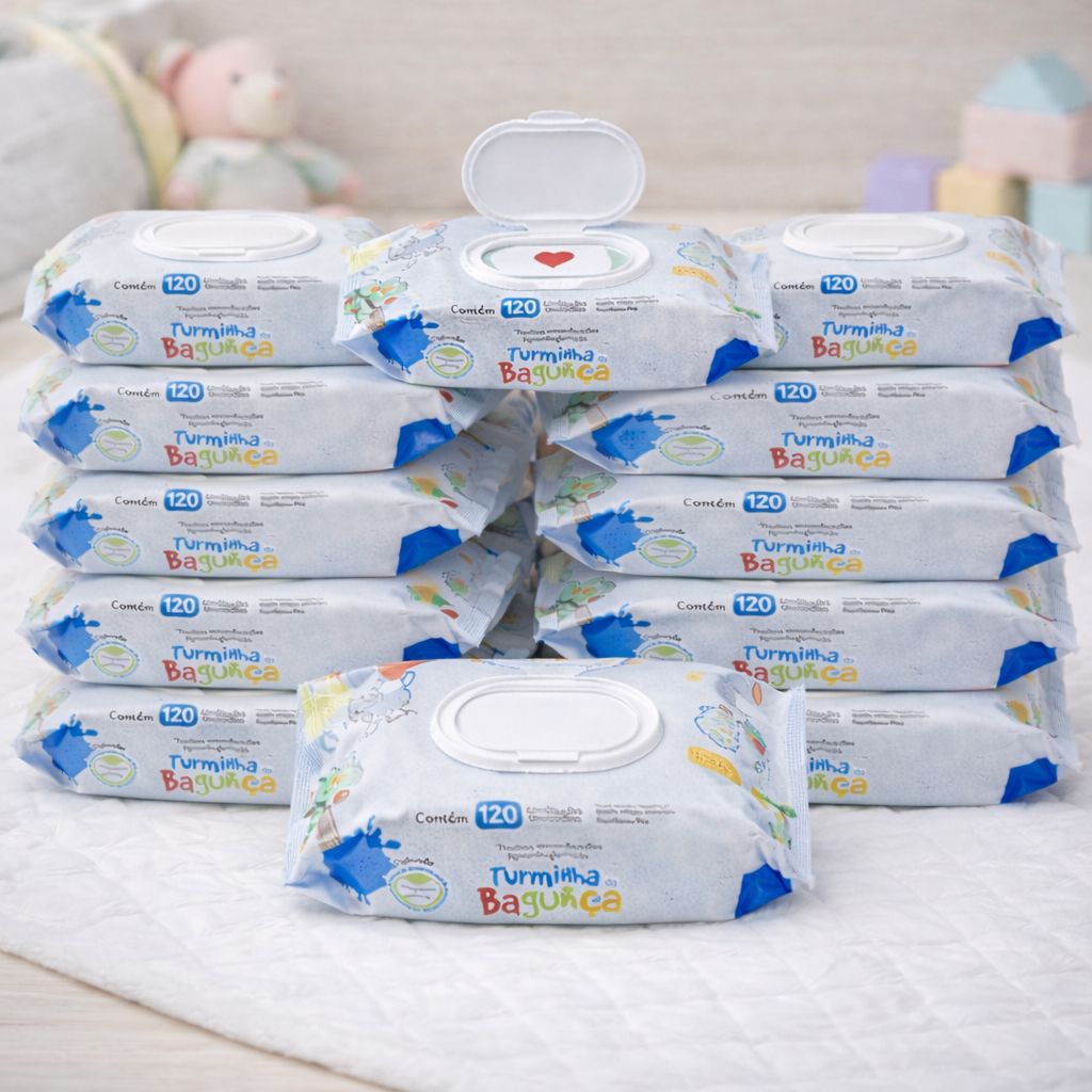 Kit 10 Toalhas Umedecidas Turminha da Bagunça 120 Folhas com Tampa