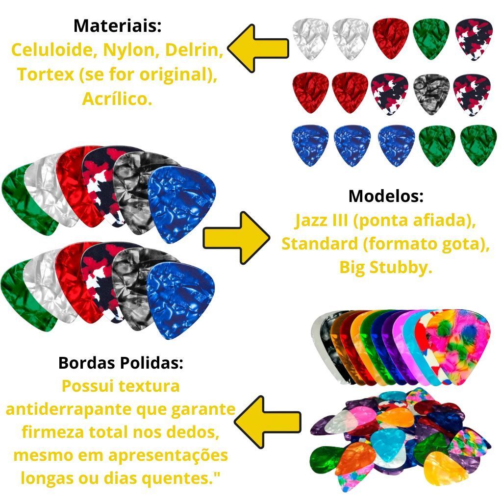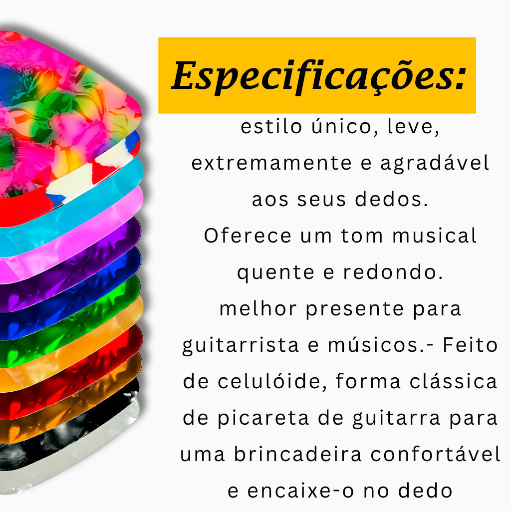 Kit 10 Palhetas Celuloide para Guitarra Baixo Cavaco Ukulele Medida Media