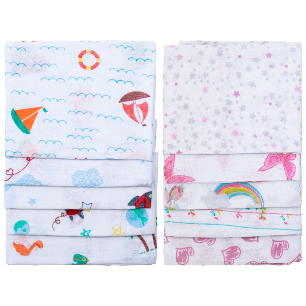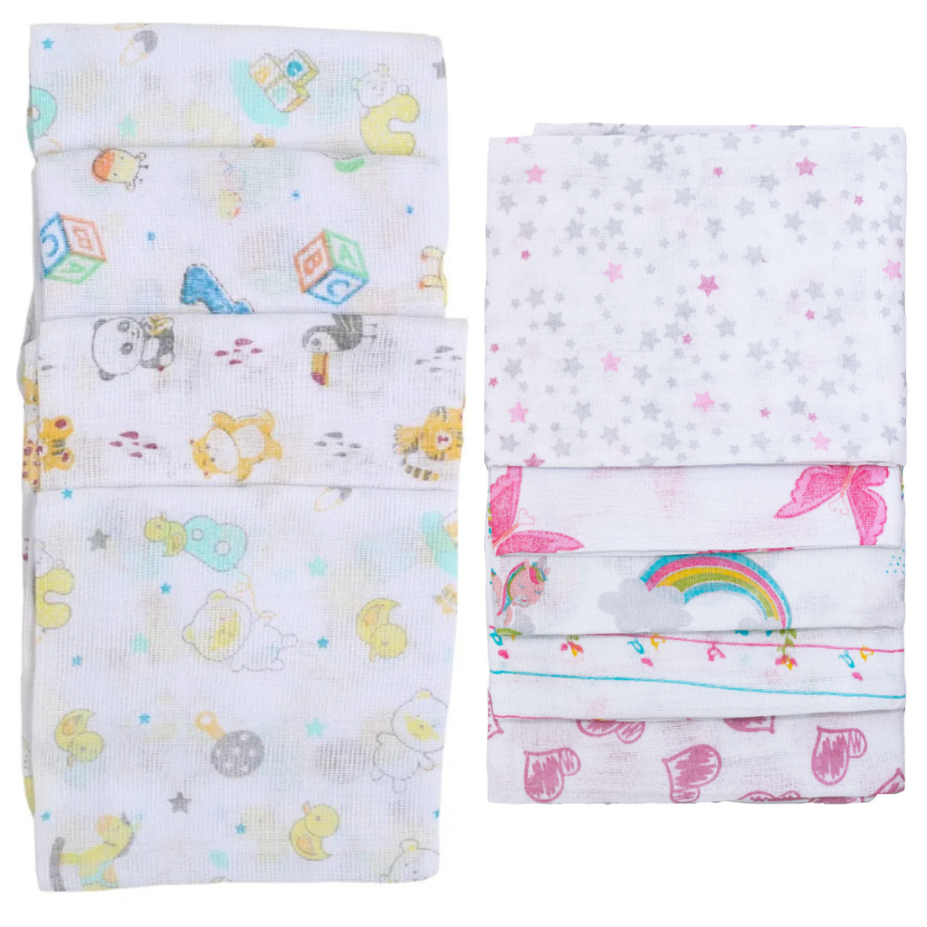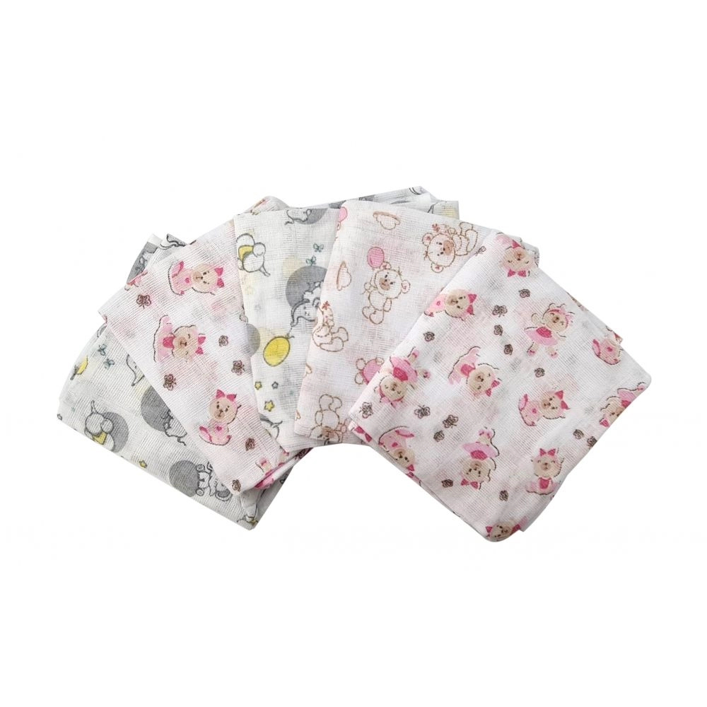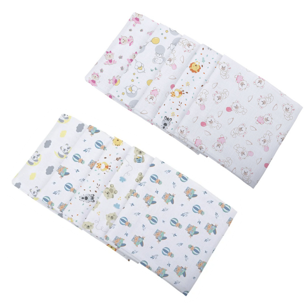 Kit 10 Pano De Boca Fraldinha Luxo Estampada 35x35cm Comum Pacote 100% Algodão