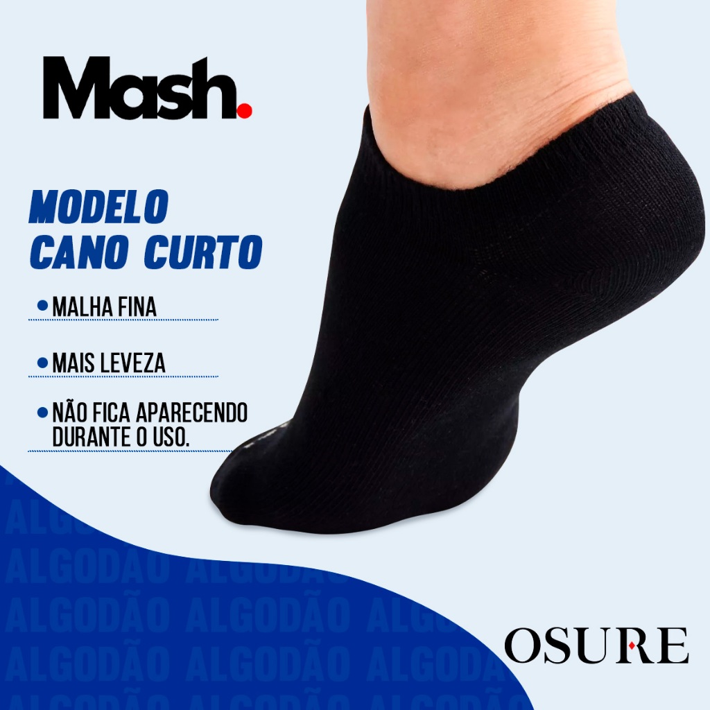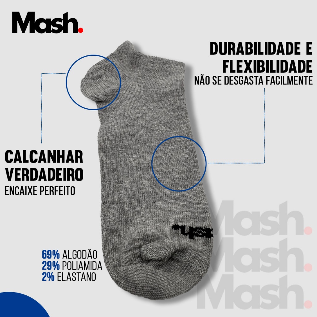 Kit 10 Pares Meias Mash Sapatilha Cano Curto Baixo Meia Soquete Sport Algodão Masculina Feminina Academia Original