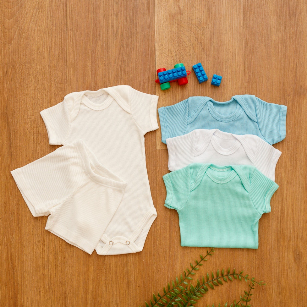 Kit 10 Peças Body e Calça Canelado Bebê Sortidas 100% Algodão 5 Body e 5 Calças Antialérgico
