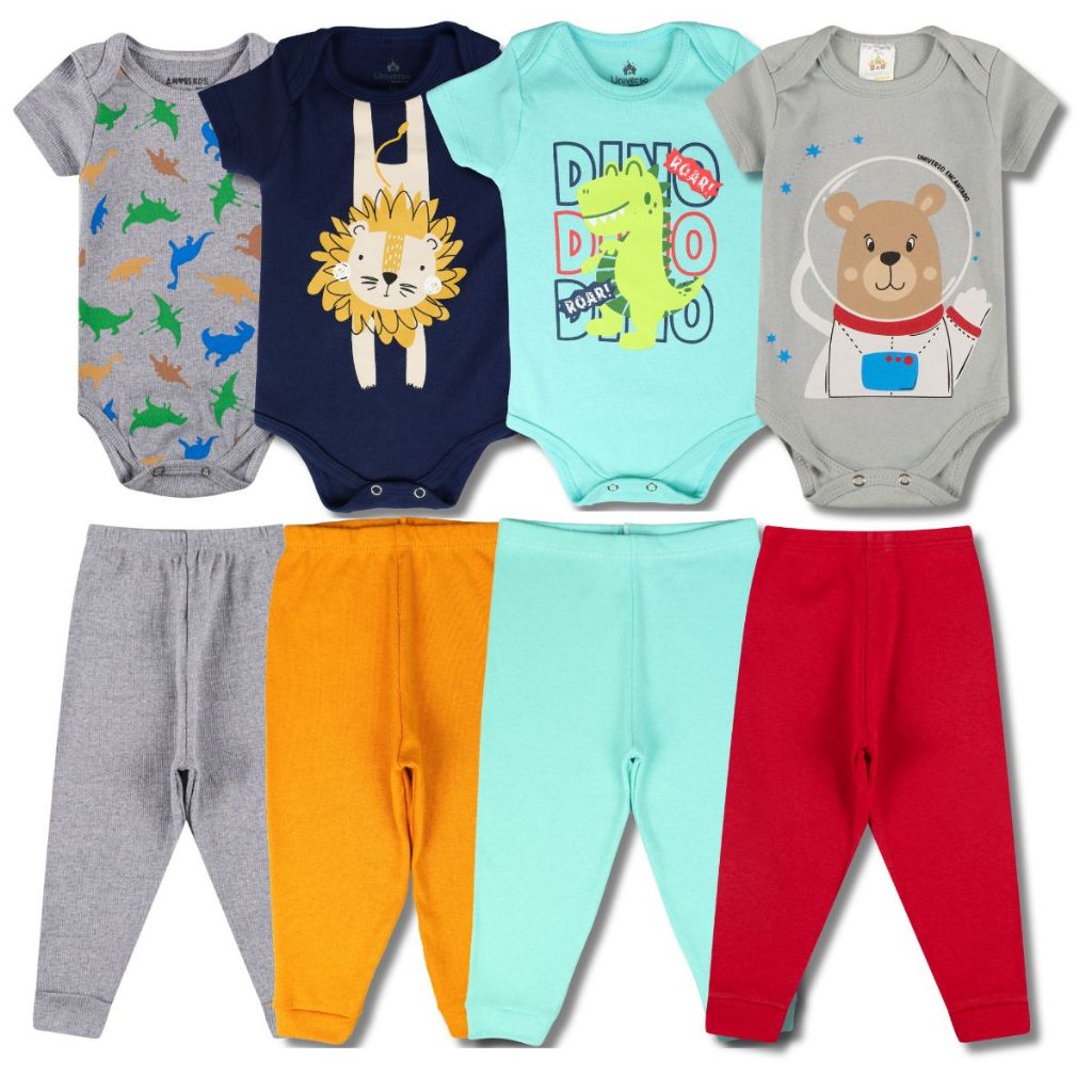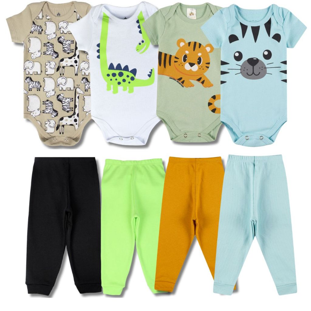 Kit 8 Peças de Roupas para Bebê Menino (4 Body Curto + 4 Calça Mijão)Kit 4 Body Roupa Infantil Bebê