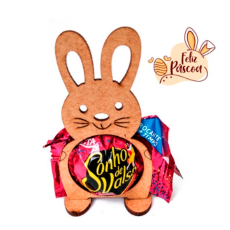 Kit 10 Porta Bombom Coelhinho da Páscoa em Madeira MDF Cru Lembrancinha Postagem Rápida