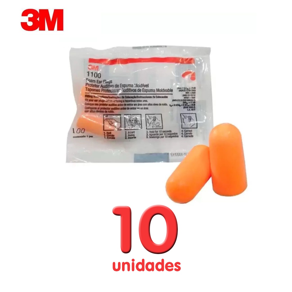 Kit 10 Protetor Auricular Plug De Espuma 3M 1100 Sem Cordão Abafador Tampão Ouvido Para Dormir