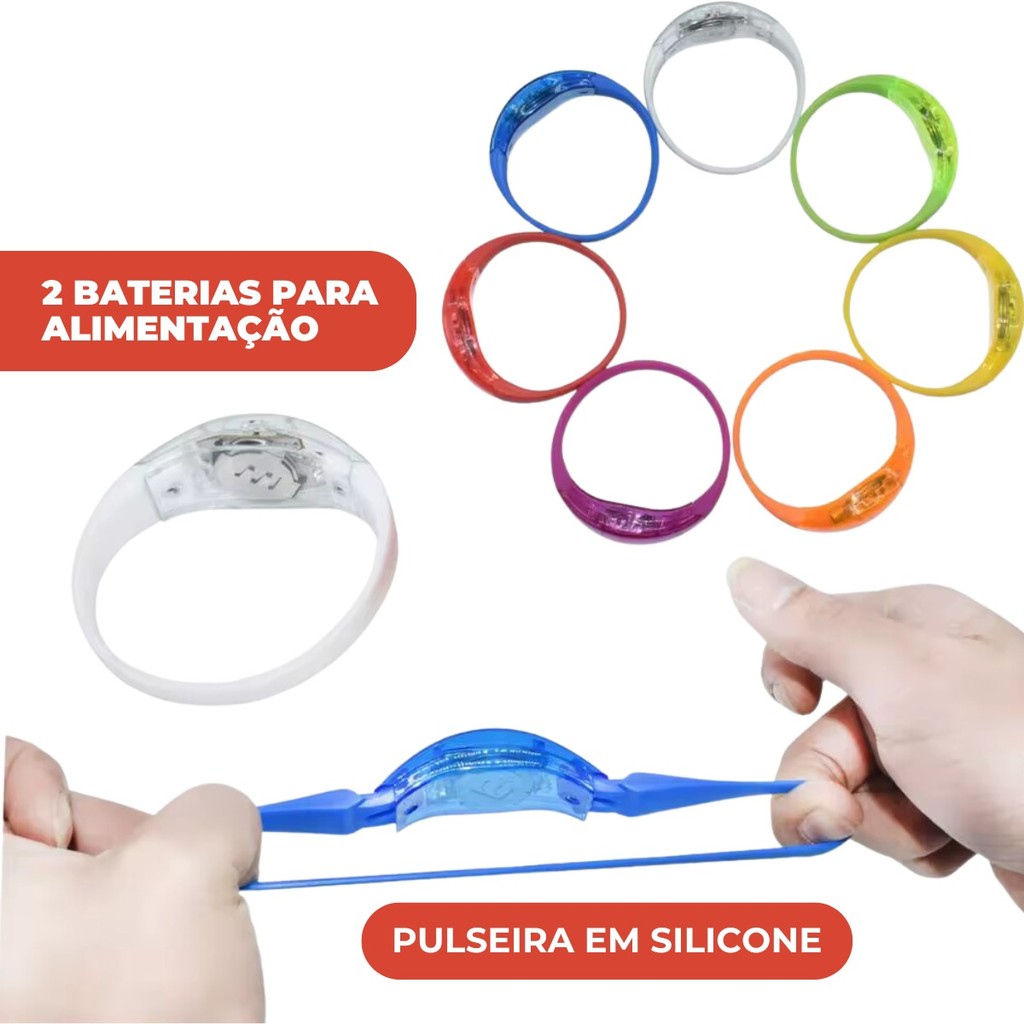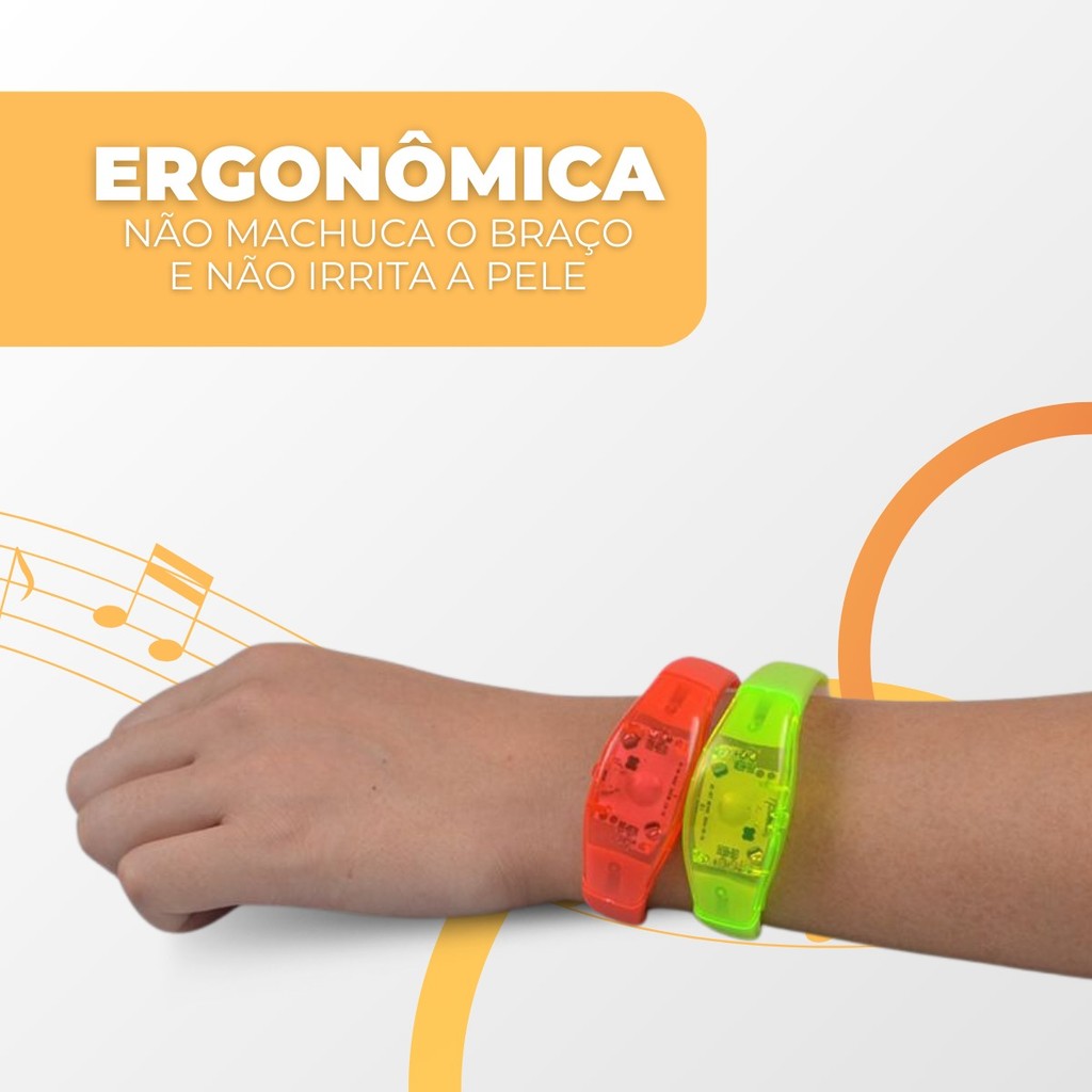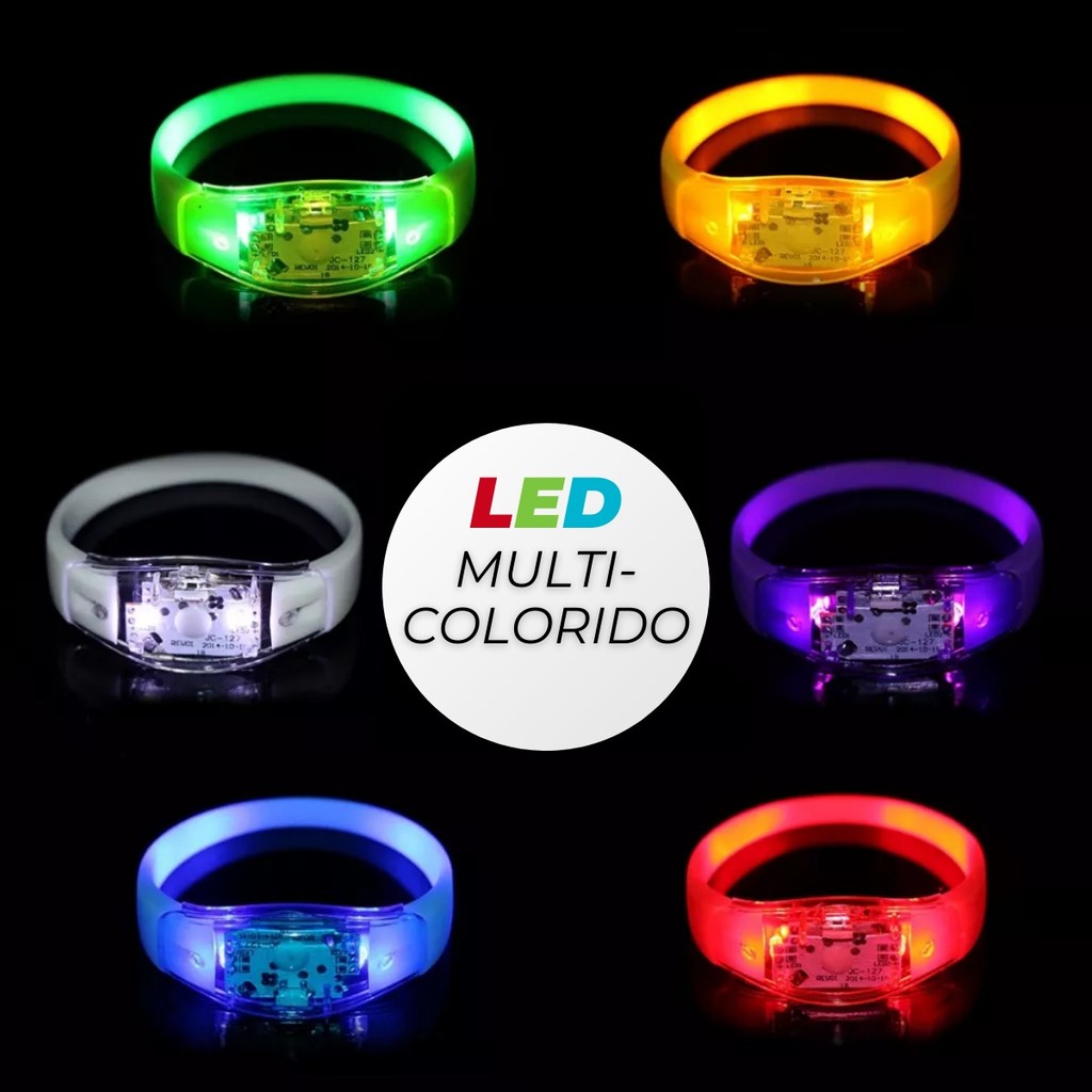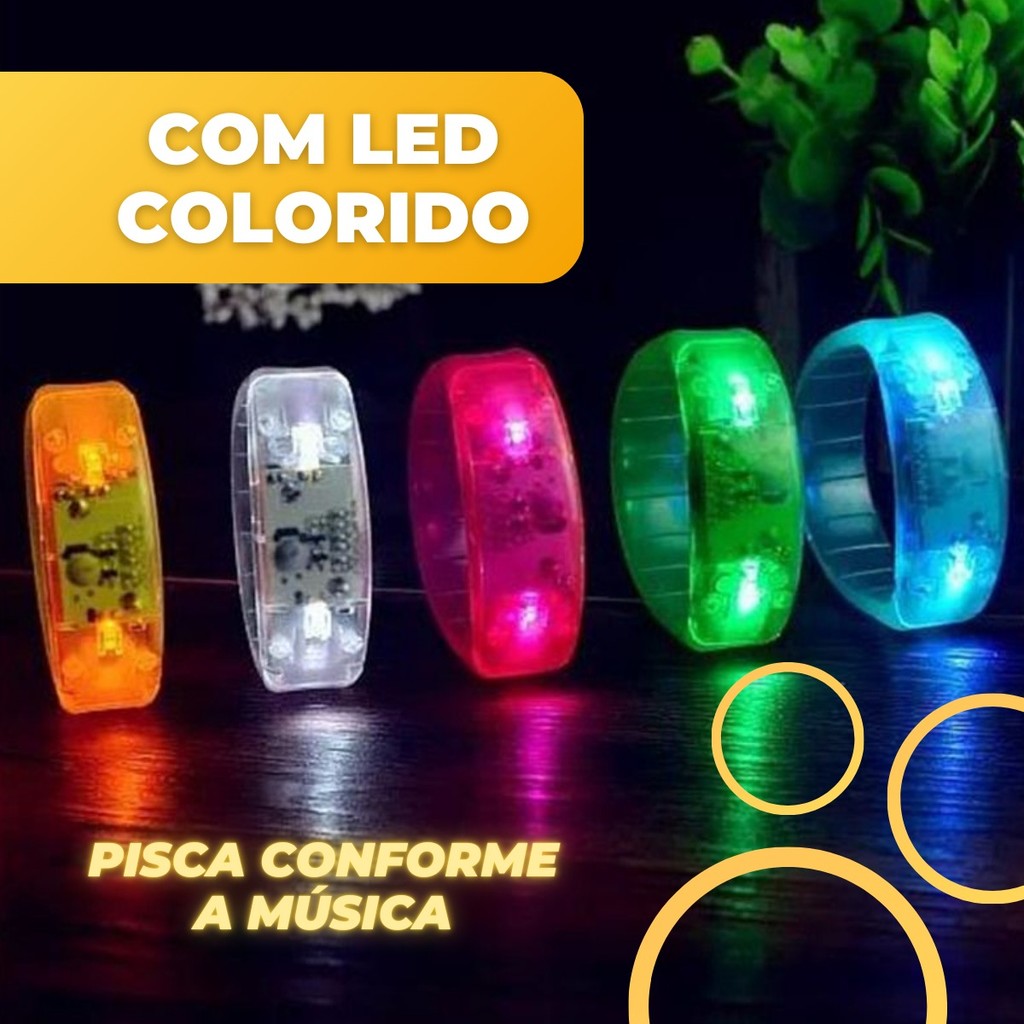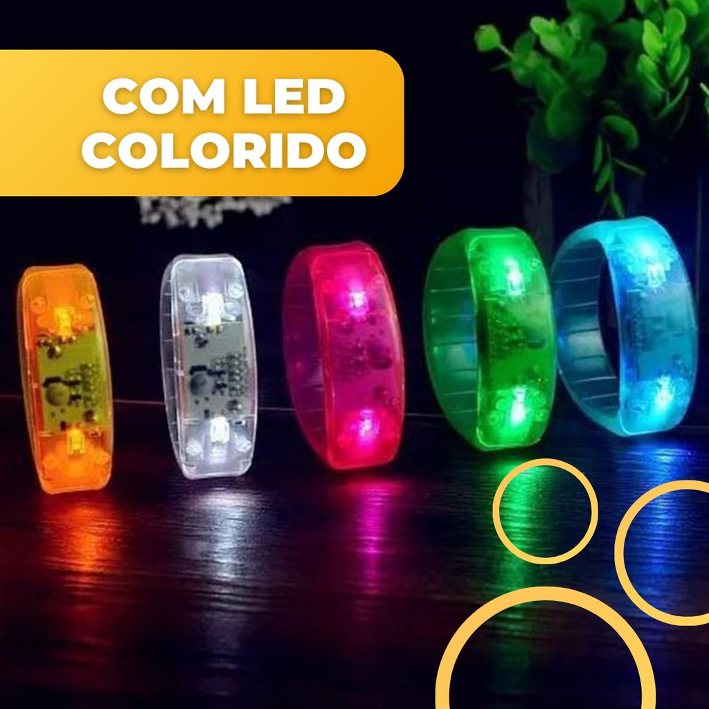 Kit 10 Pulseira De Led Pisca Ativada Por Som Conforme Batida Da Musica Festa Casamento Balada