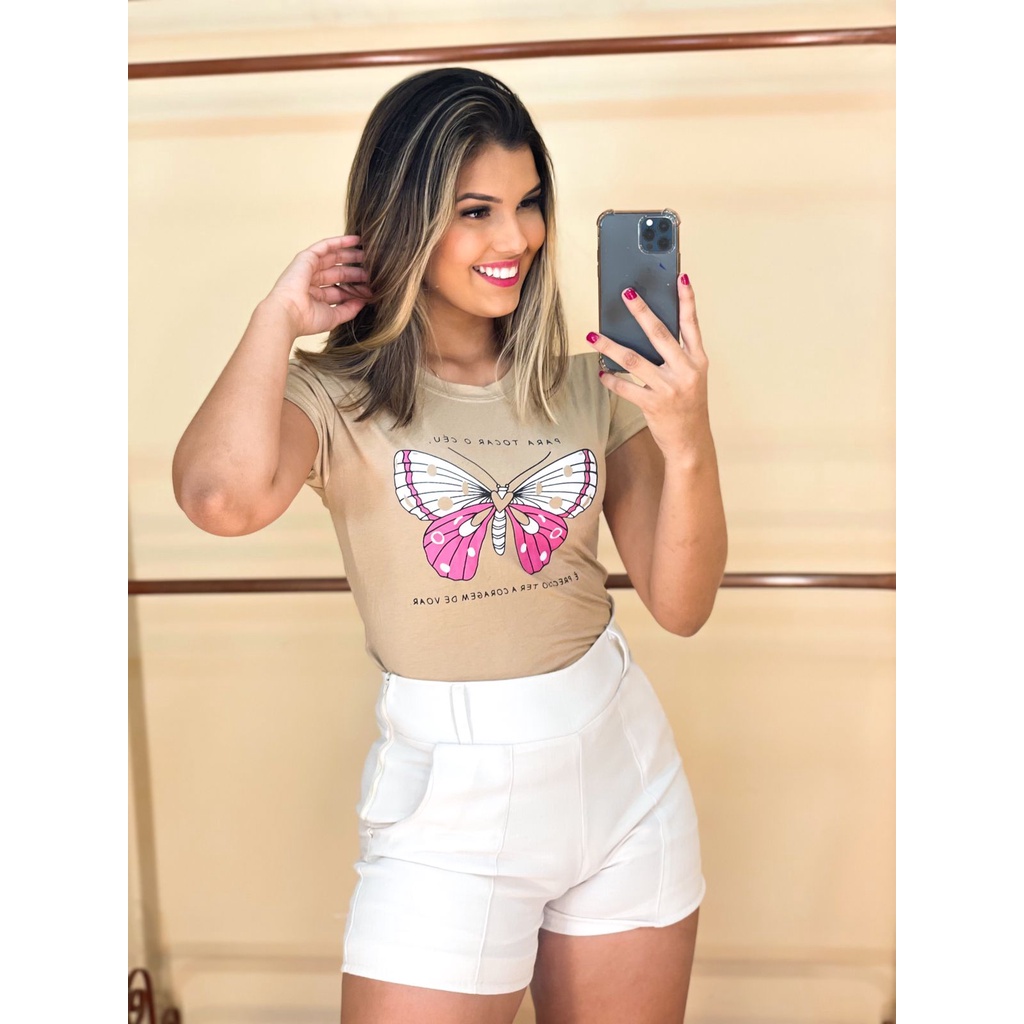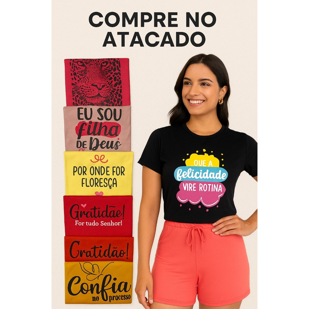 Kit Blusa T Shirt Feminina Manga Curta Camiseta Baby Look Malha Radiosa Premium