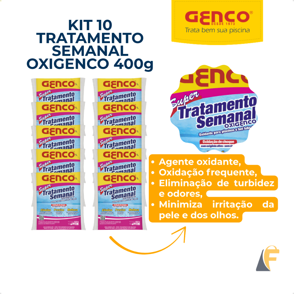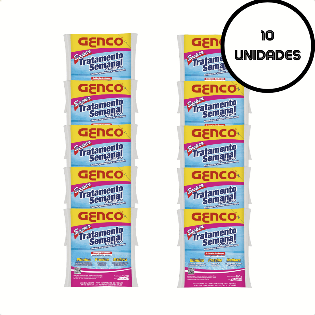 Kit 10 Tratamento Semanal Genco Oxigenco Oxidante Piscinas Spas 400g + Brinde