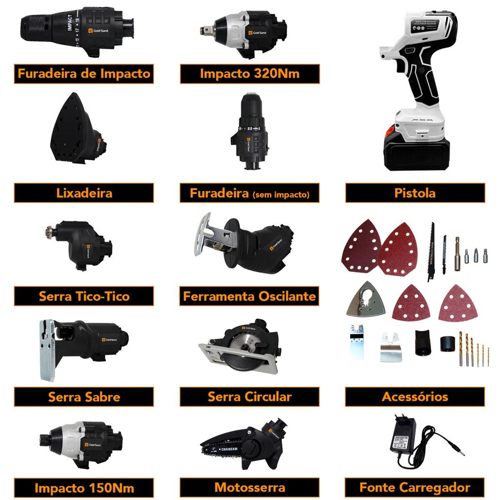 Kit 10 em 1 Parafusadeira Furadeira Lixadeira Serra Martelete Elétrico Impacto