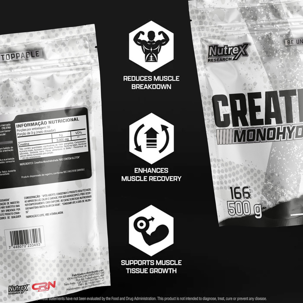 Kit 100% Whey Protein + Pré Treino Concentrado 180g + Creatina Monohydrate Pura 500g - Nutrex Research