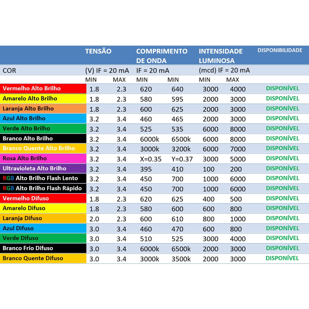 Kit 100x Led 3mm Alto Brilho 5 cores + Espaguete + Resistor 5v 9v 12v 24v